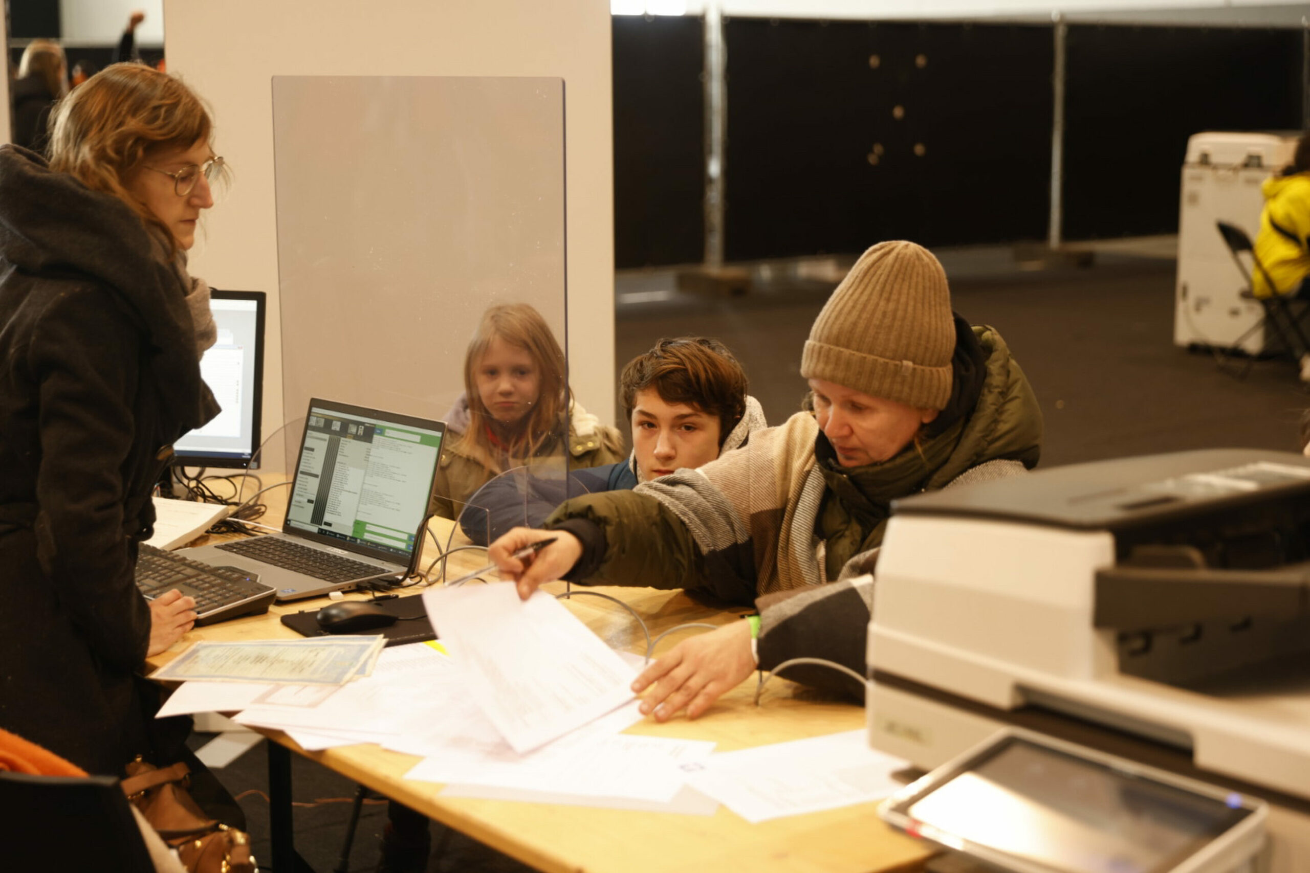 Ukrainian refugees registering at the opening of a refugee centre in Brussels after the start of the war in 2022. Credit: Belga/ James Arthur Gekiere