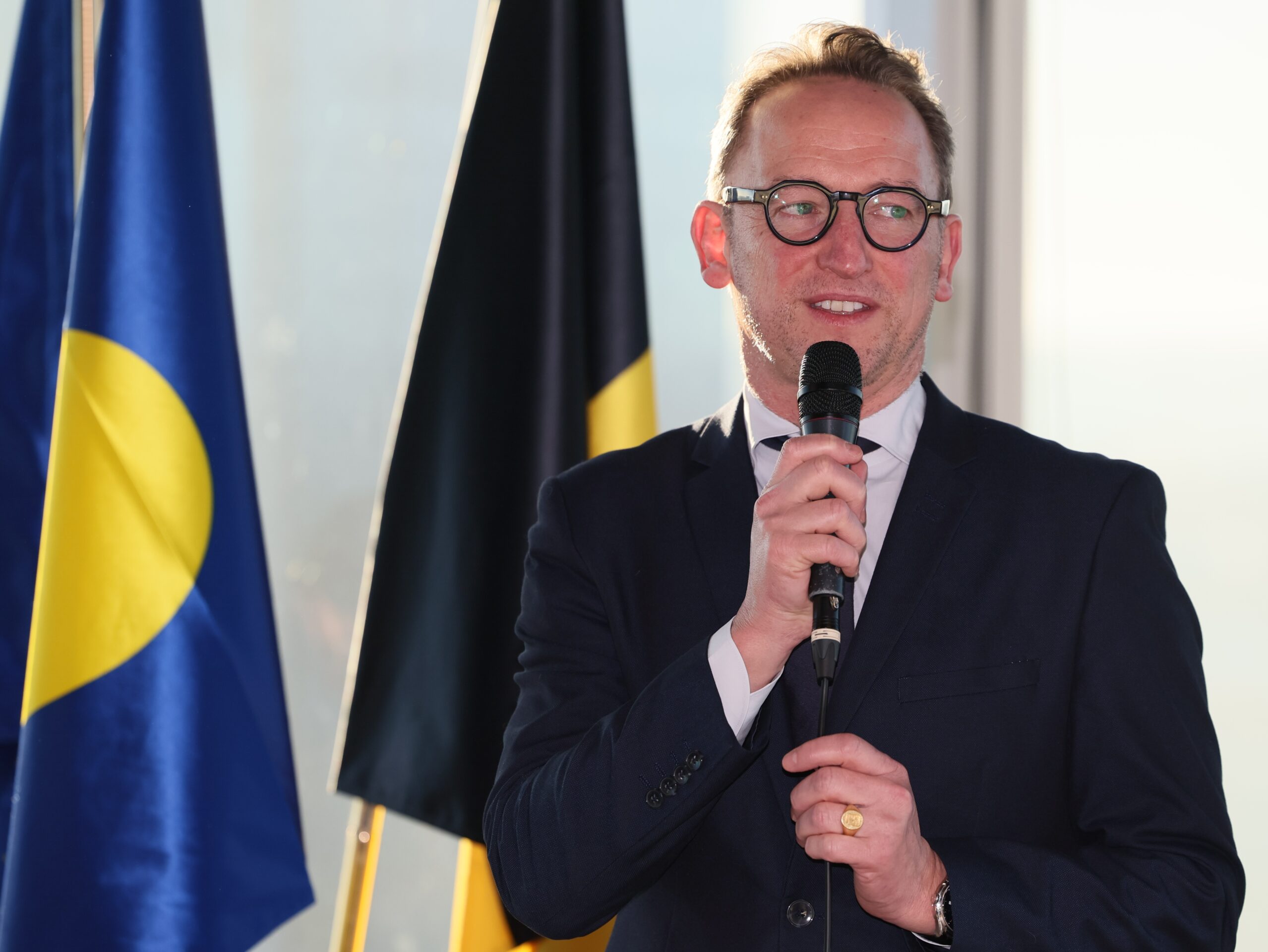 Uccle mayor Boris Dillies takes the oath during a ceremony for the new mayors of the Brussels Capital Region, Friday 29 November 2024, in Brussels. Credit: Belga