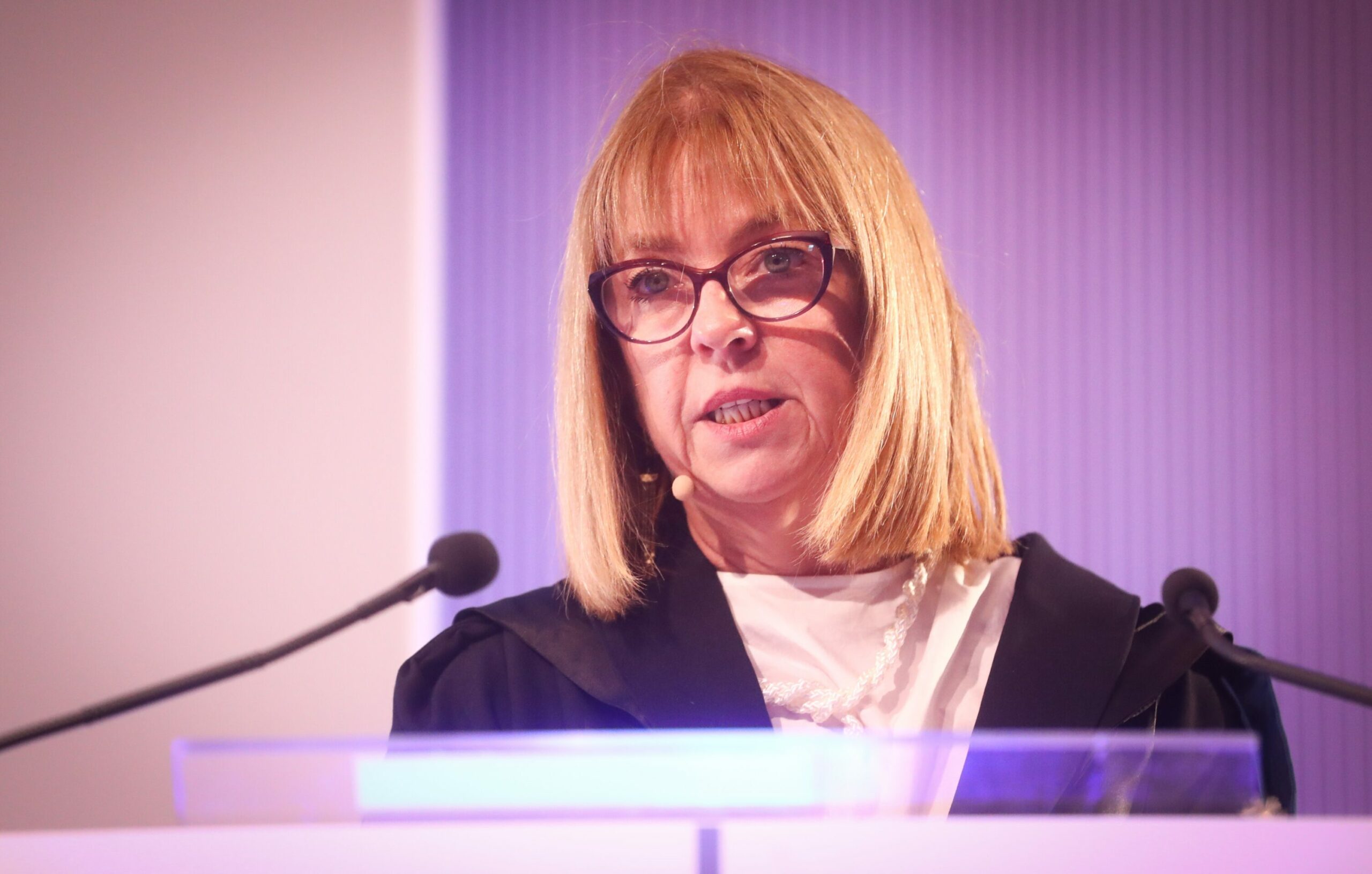 ULB chancellor Annemie Schaus pictured during a ceremony for the new academic year 2020-2021 of the ULB (Universite Libre de Bruxelles) university and the installation of the new rector, Friday 11 September 2020 in Brussels. Credit: Belga
