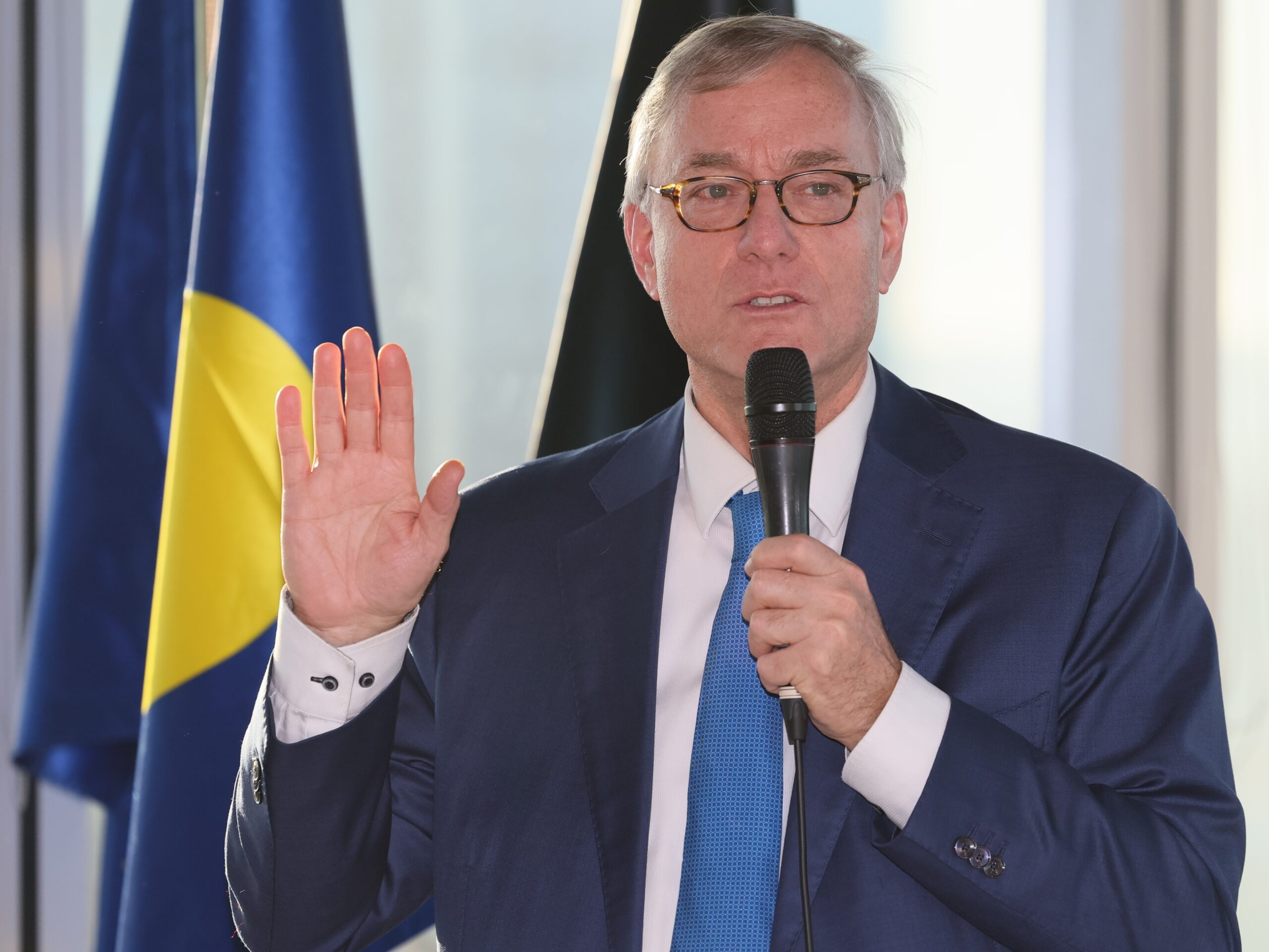Etterbeek mayor Vincent De Wolf takes the oath during a ceremony for the new mayors of the Brussels Capital Region, Friday 29 November 2024, in Brussels. Credit : Belga/Benoît Doppagne.