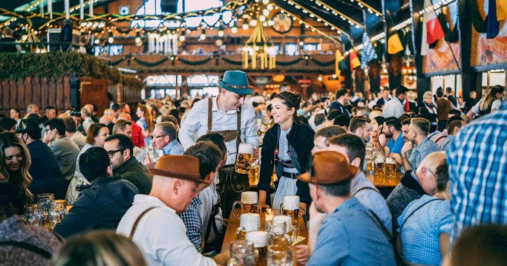 Oktoberfest is indelibly linked to Munich, but Brussels holds its own version, in a large tent in the Cinquantenaire Park, decorated in Bavarian style, offering original Munich beers, Bavarian specialities like Bretzels (Brezn), white sausages (Weißwurst), and roasted pork knuckles (Schweinshaxn), along with traditional brass band music.