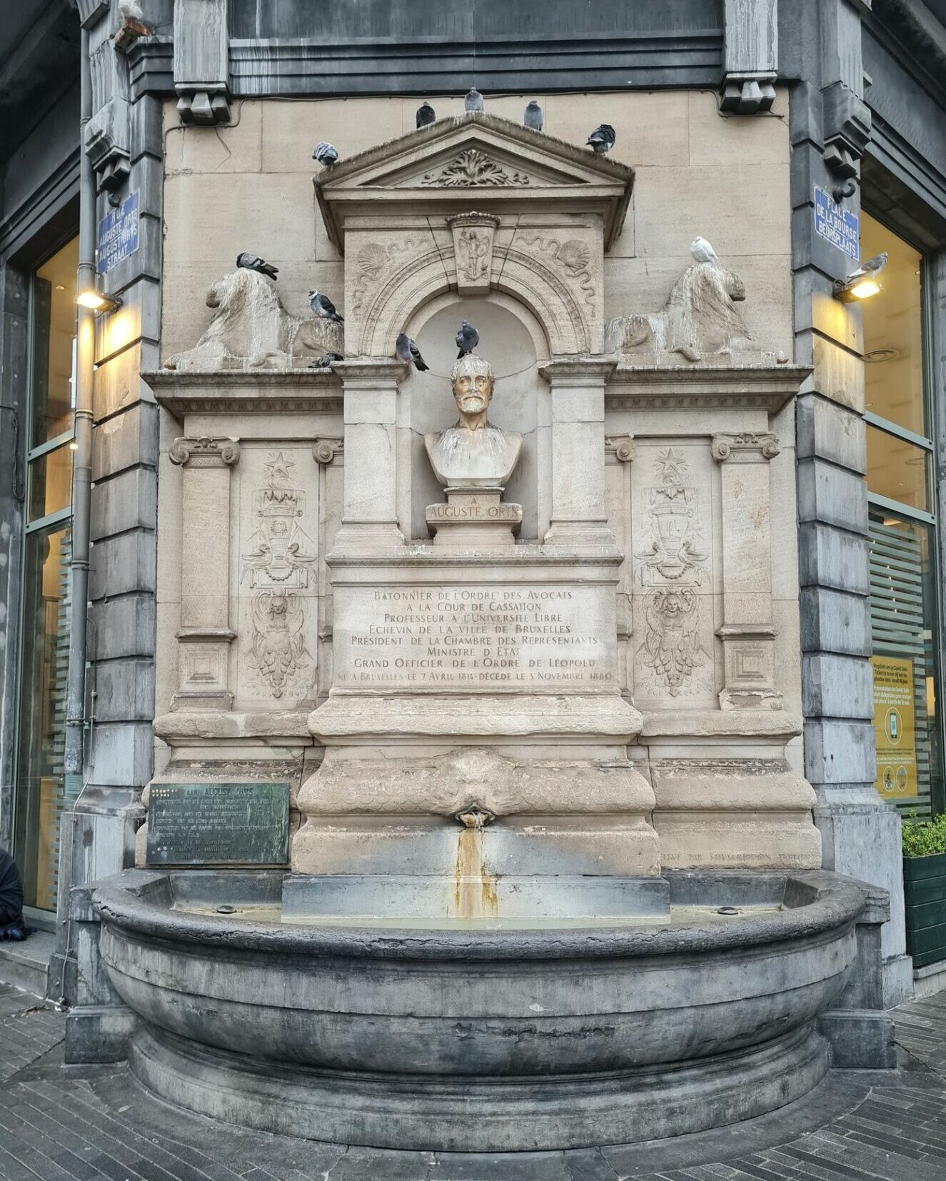 Two fountains will receive attention around Place Bourse. The Auguste Orts Fountain. Erected in 1888 by public subscription, the memorial fountain was dedicated to the lawyer, liberal councillor and historian Auguste Orts (1814-1880).