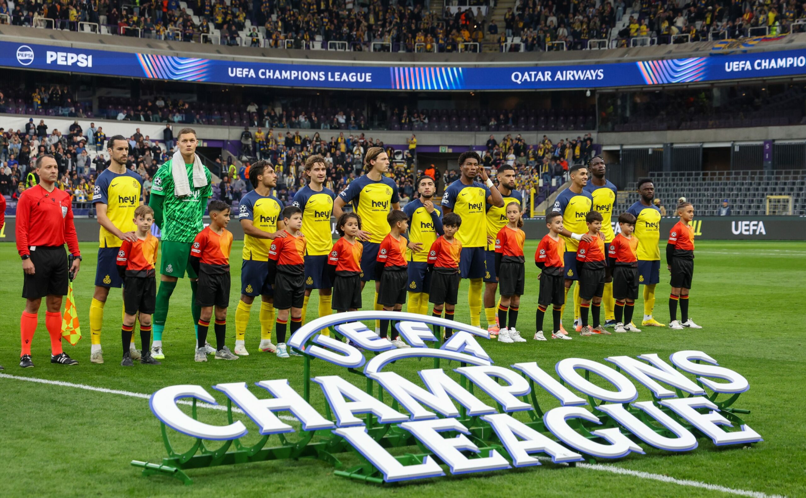 Union's players pictured at the start of a game between Belgian soccer team Royale Union Saint-Gilloise and English team Newcastle United FC, in Brussels, on Wednesday 01 October 2025. Credit: Belga / Virginie Lefour