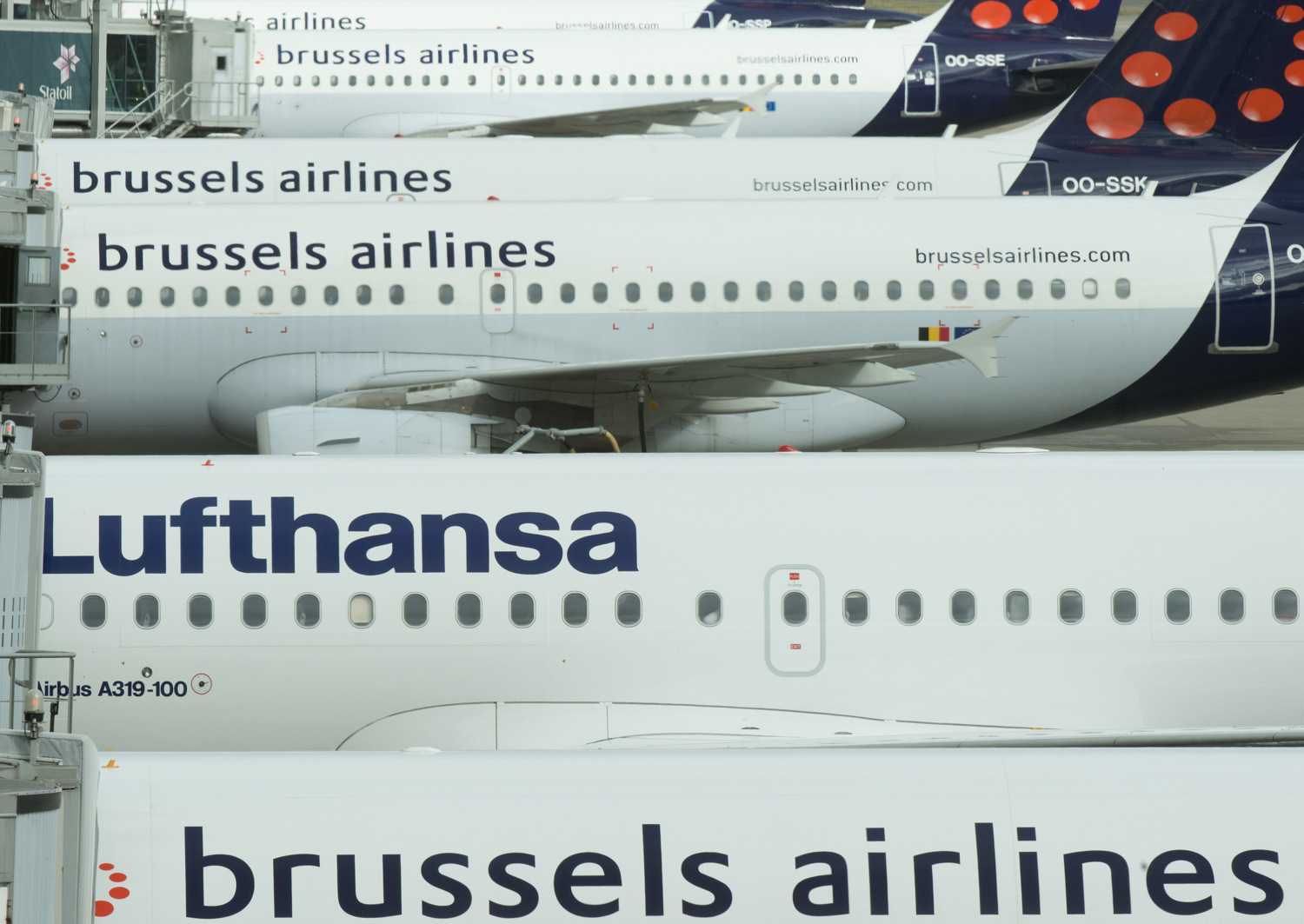 Illustration image of traditional carriers Lufthansa and Brussels Airlines aeroplanes at Brussels Airport in Zaventem. Credit: Belga / Benoit Doppagne