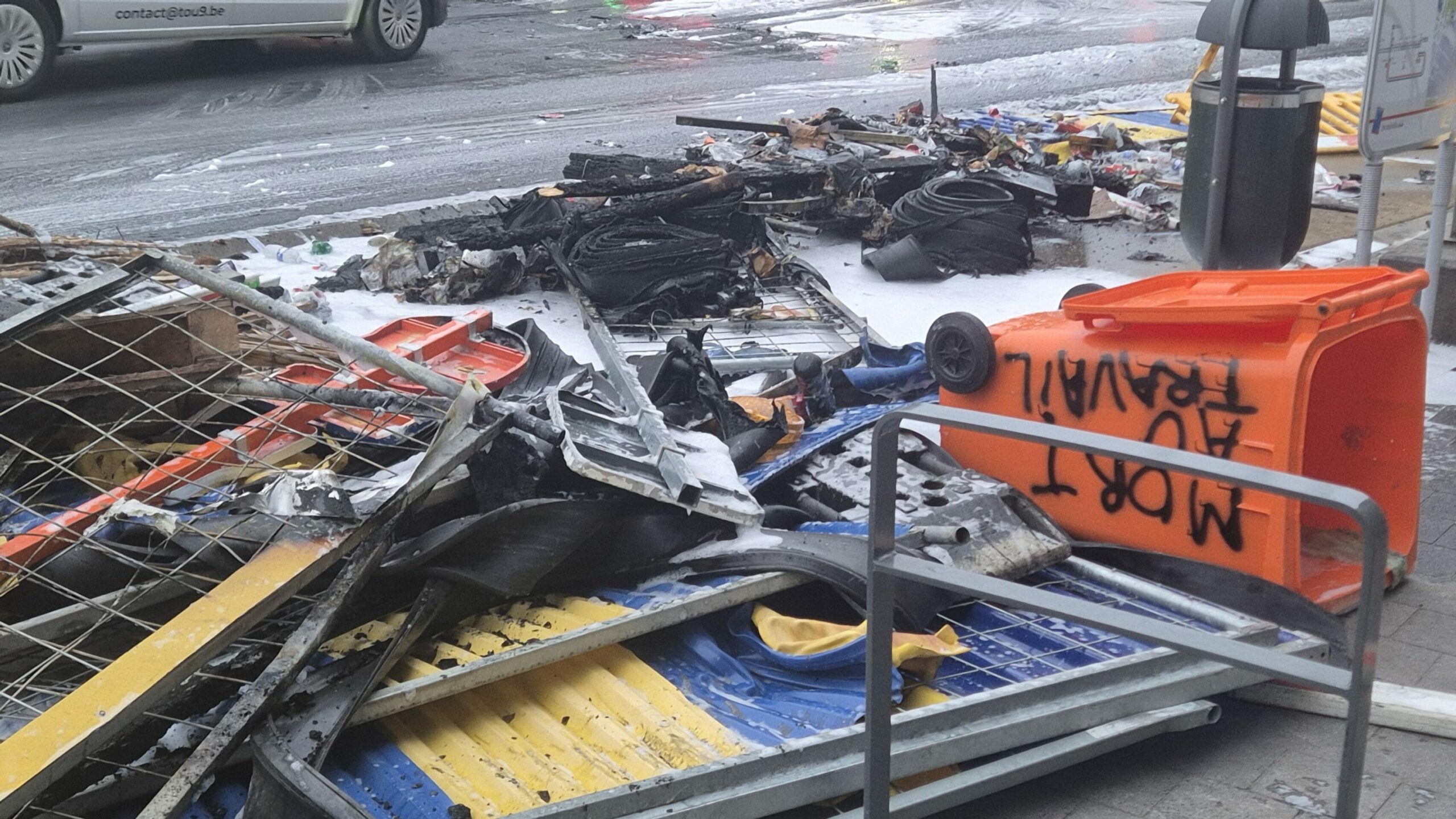 Extinguished fires pictured near Place d'Yser ahead of a joint demonstration on 14 October 2025. Credit: Belga/Heleen De Bisschop