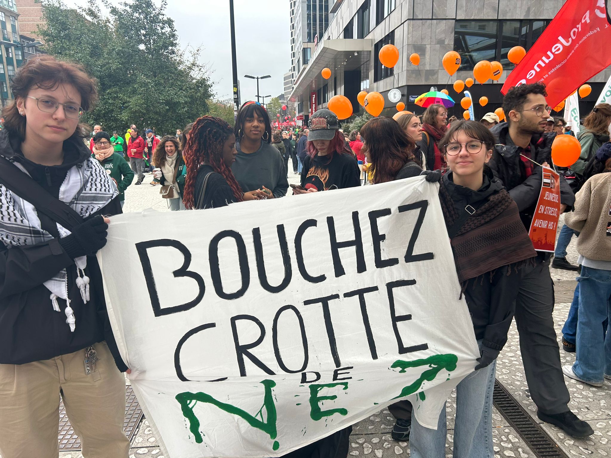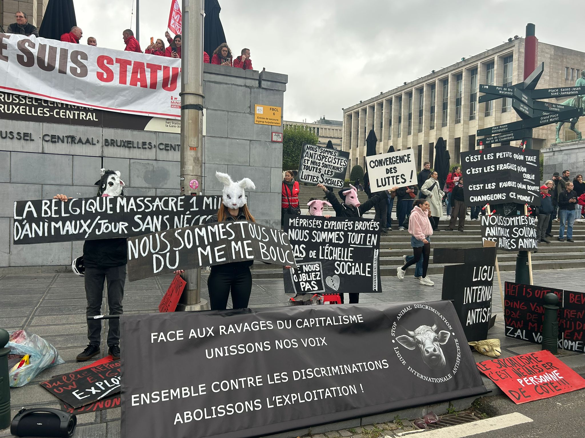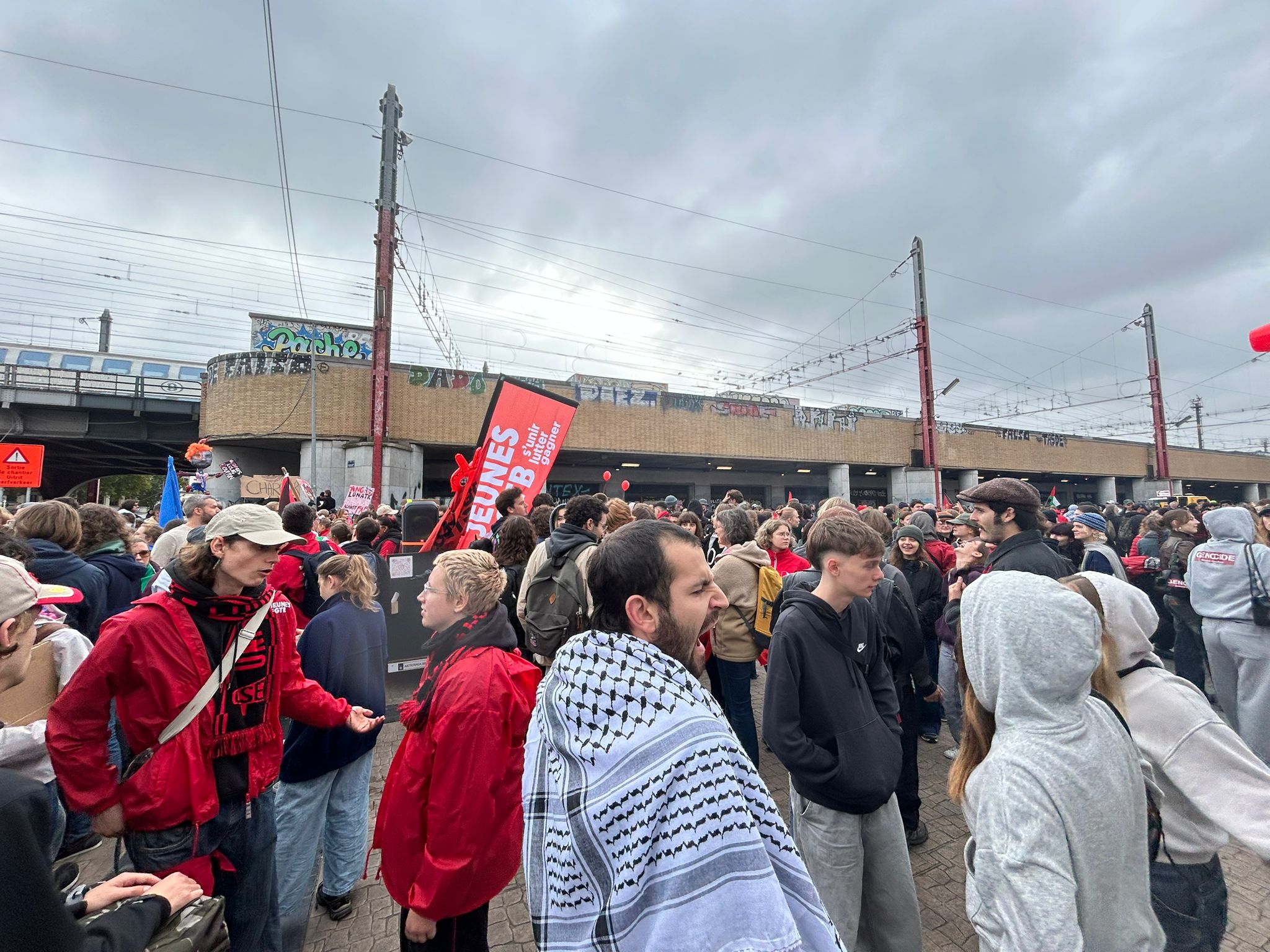 At the exit of Brussels-North station, railway workers had blown the whistle and were setting off fireworks and bombs. The demonstration began around 9.45am with speeches and addresses.