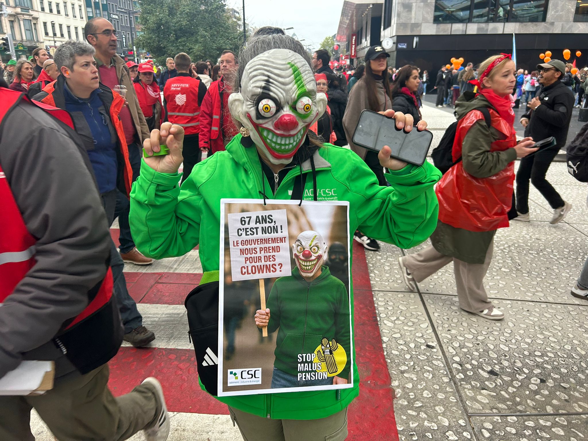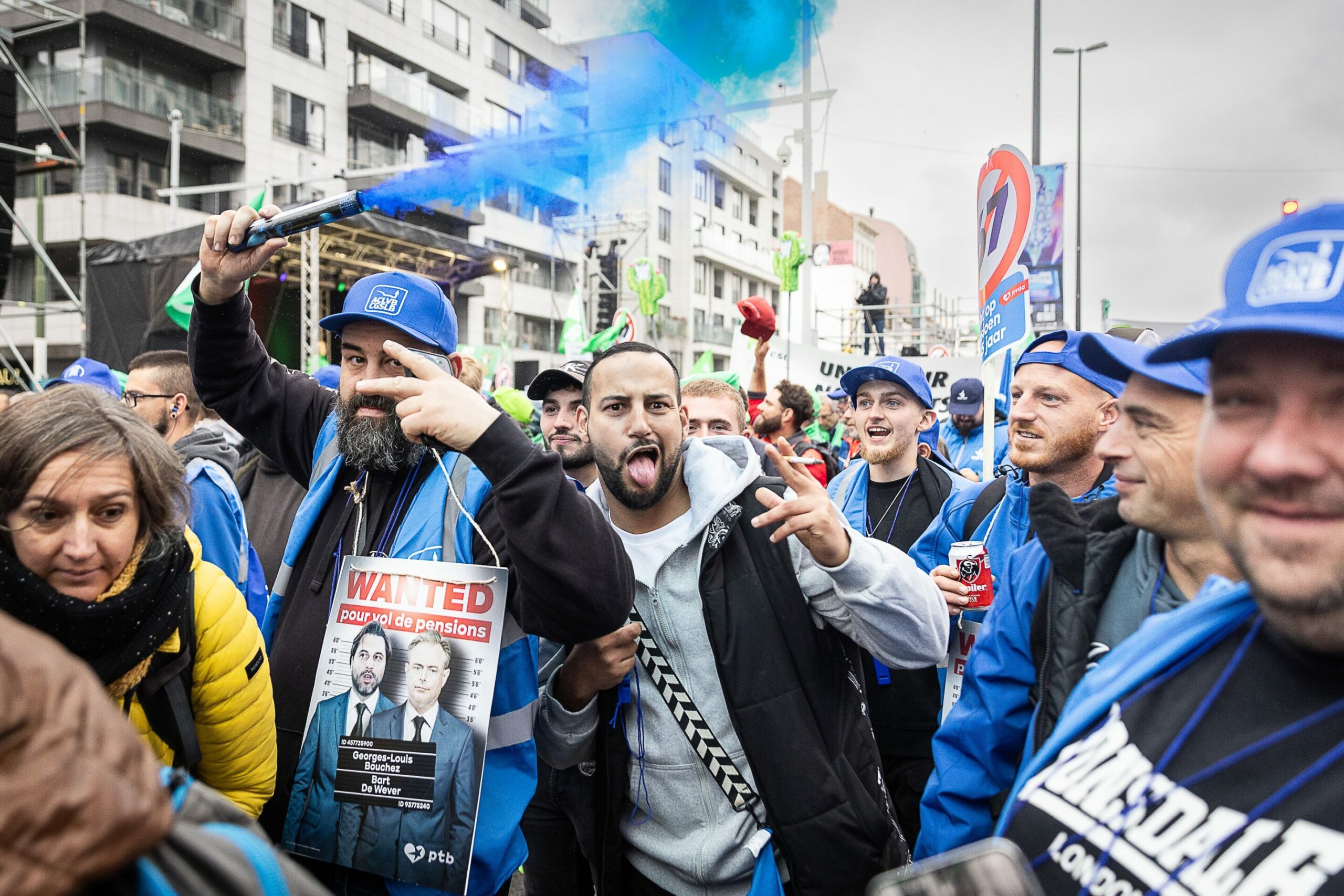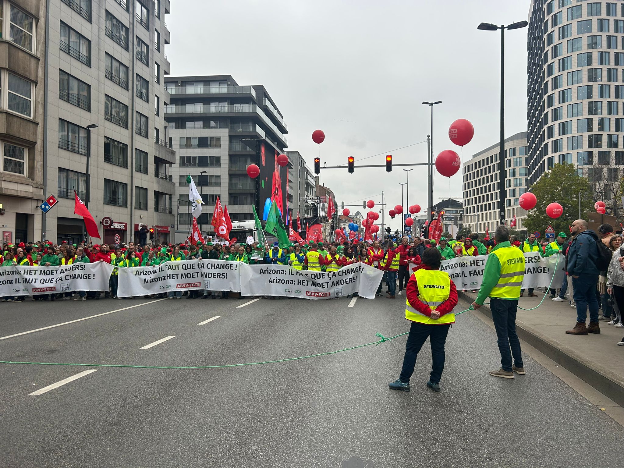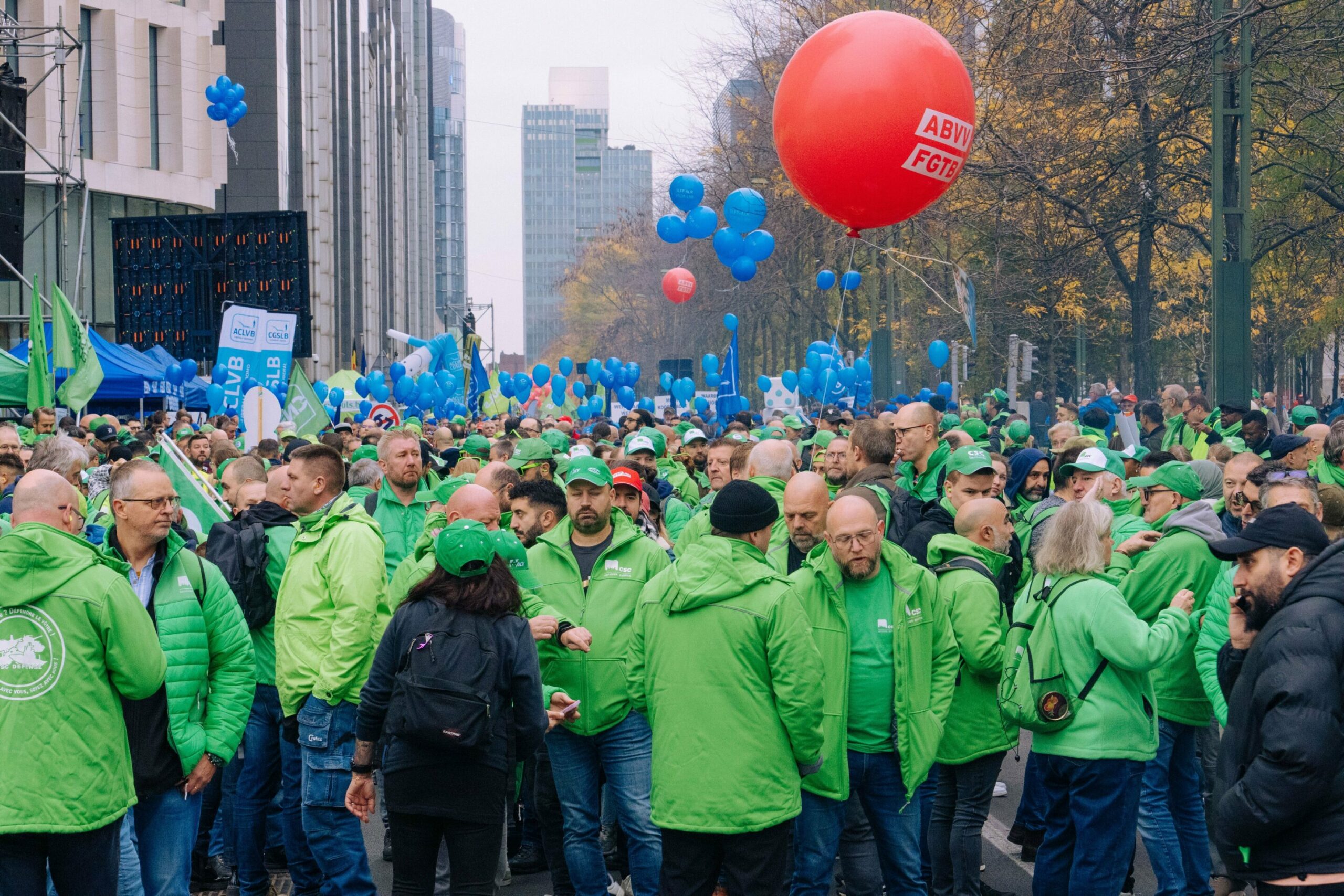 The day of action was called by trade unions ACV-CSC, FGTB-ABVV, and CGSLB-ACLVB. They are denouncing measures which impact pensions, social benefits, working conditions, job security, and salaries.