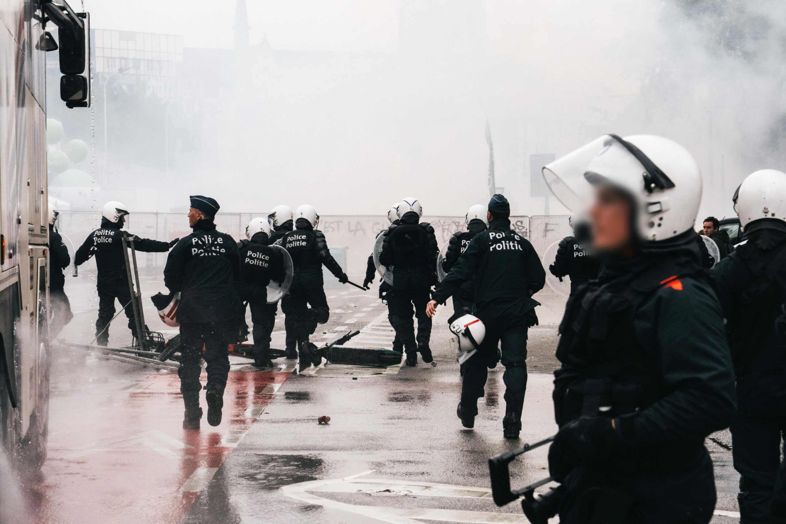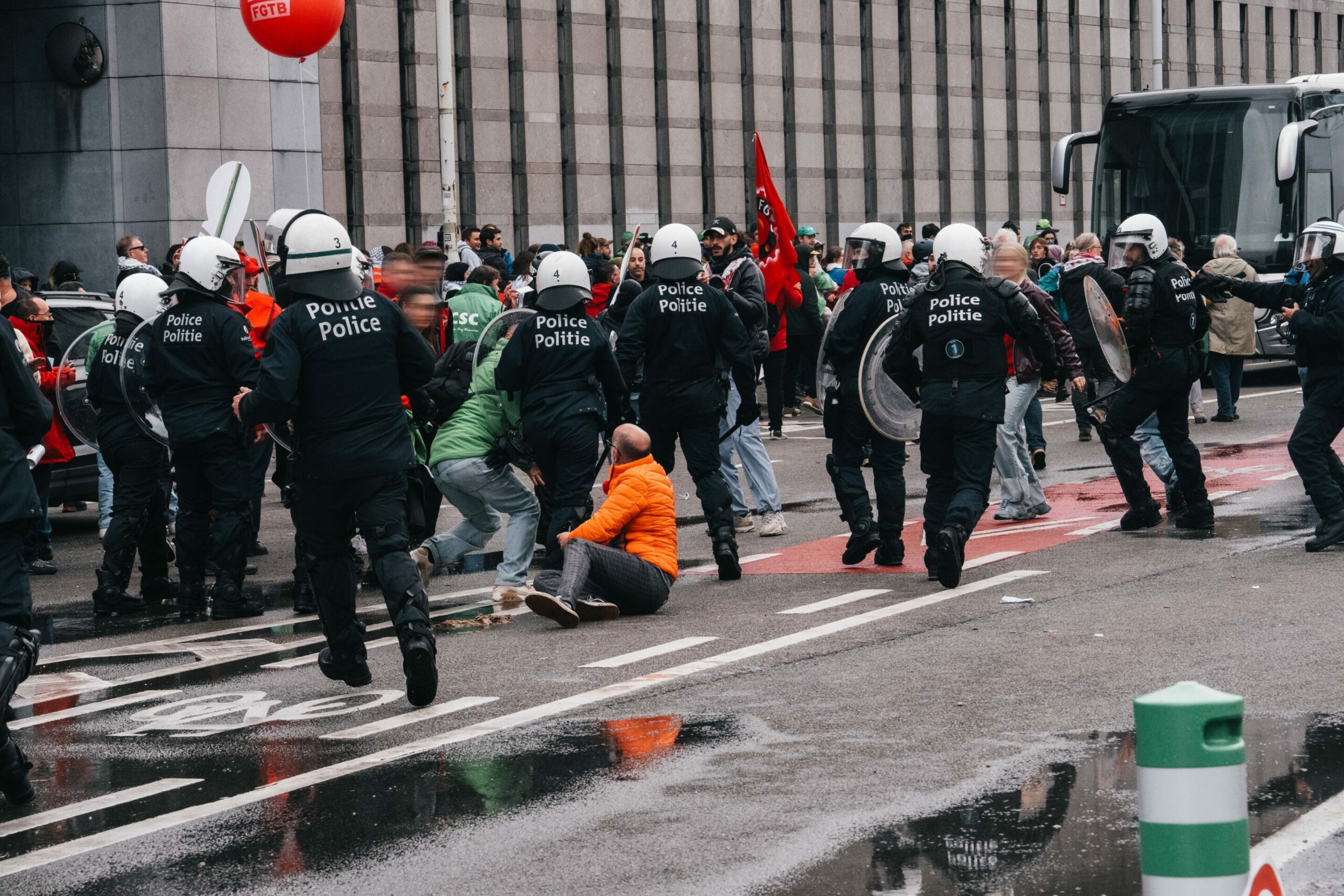 Image taken as protesters clash with riot police in Brussels on 14 October 2025. Credit: Belga/Marius Burgelman