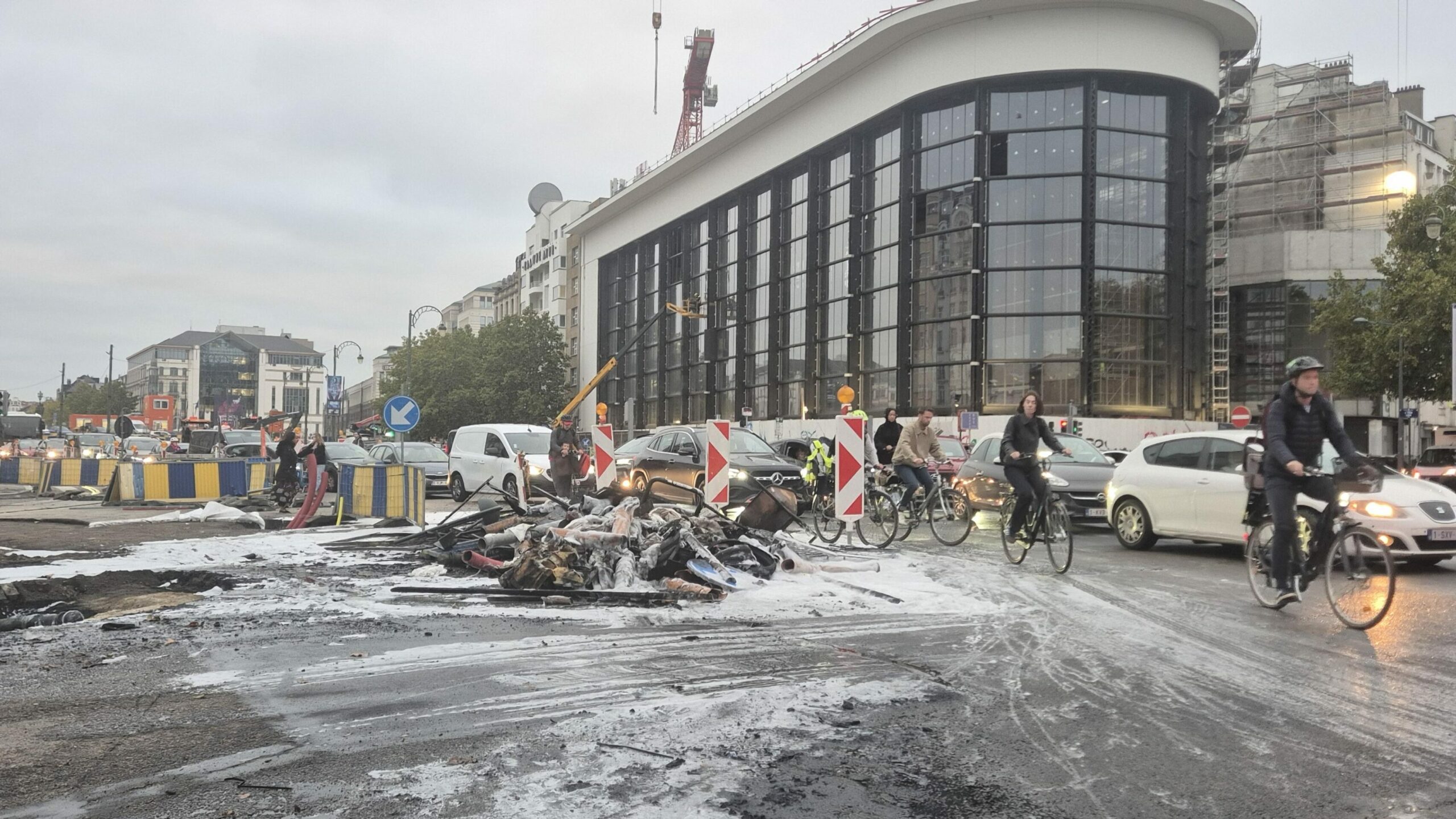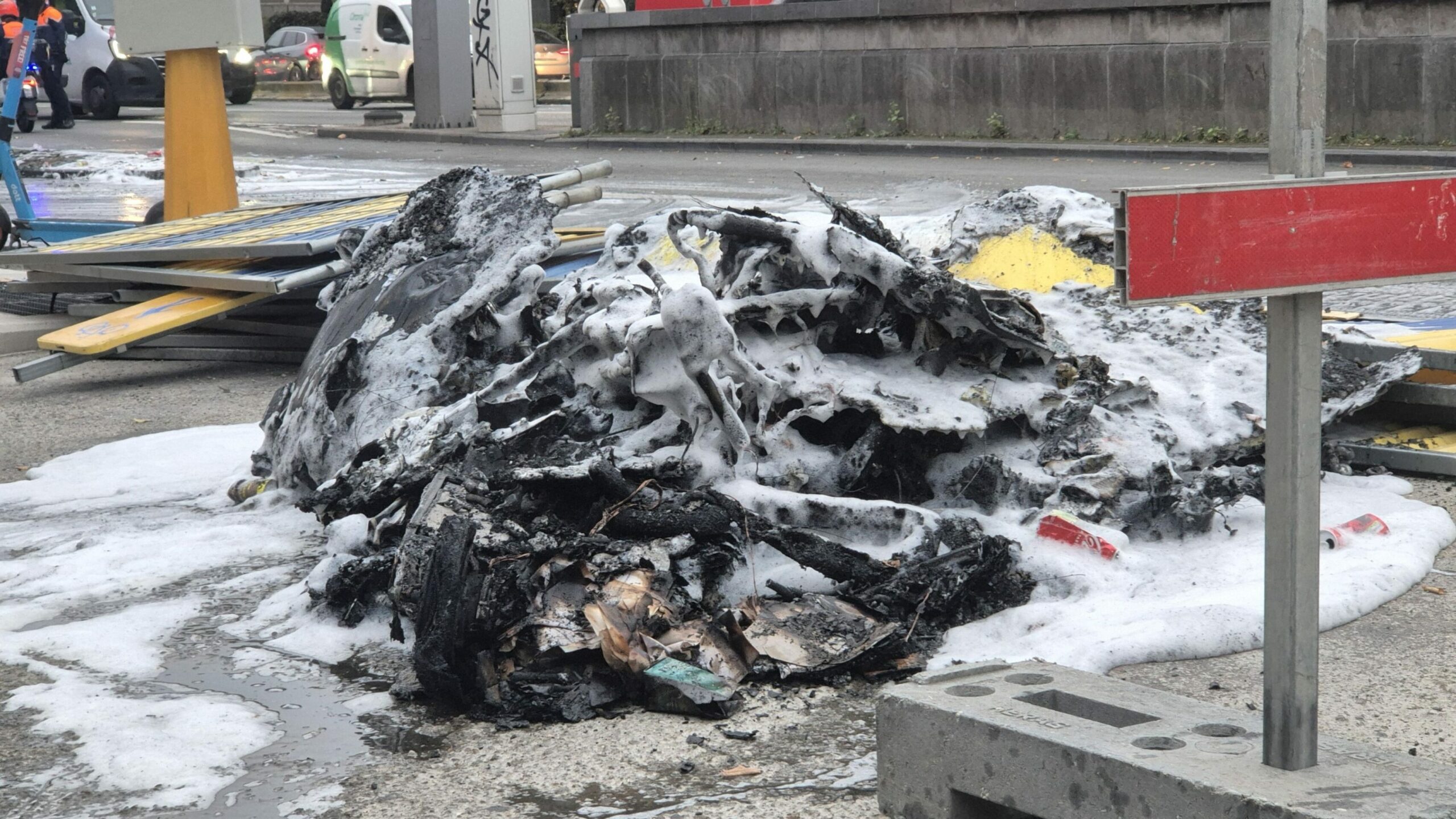 Extinguished fires pictured in downtown Brussels on 14 October 2025. Credit: Belga/Timon Ramboer