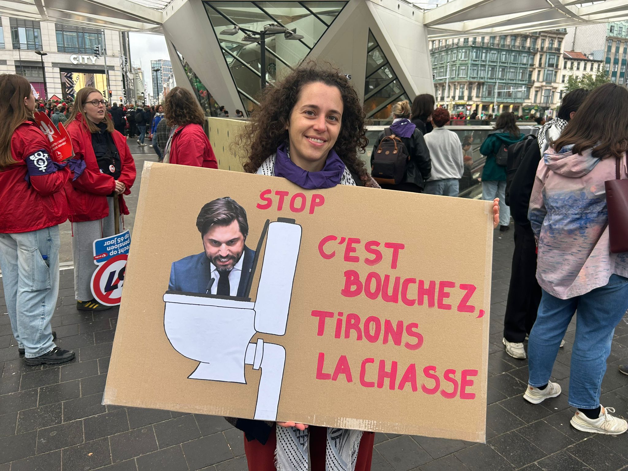 Bénédicte, 39, is joining today's demonstration in Brussels. Credit: Aurore Spitaels/The Brussels Times