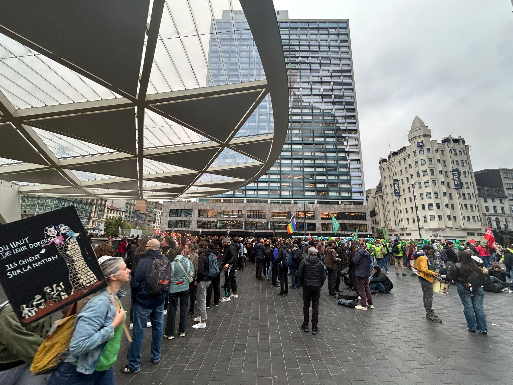 [13:03] - Crowd forms by Brussels Midi Station as demonstration nears end