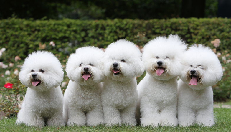 A row of Bichon frisés
