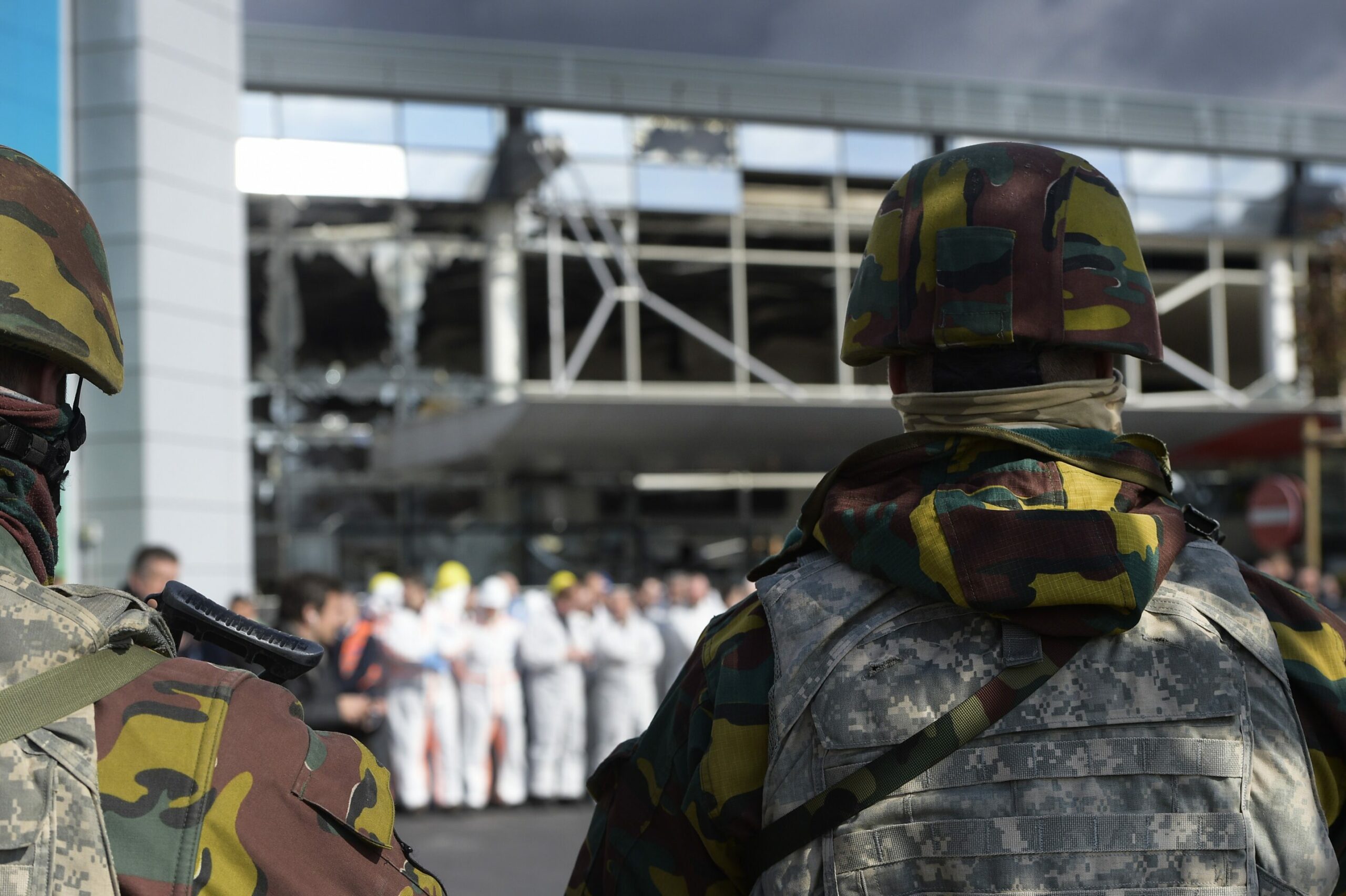 Military personnel outside Brussels Airport a day after the terrorist attacks, Wednesday 23 March 2016. Credit: Belga/Yorick Janssens