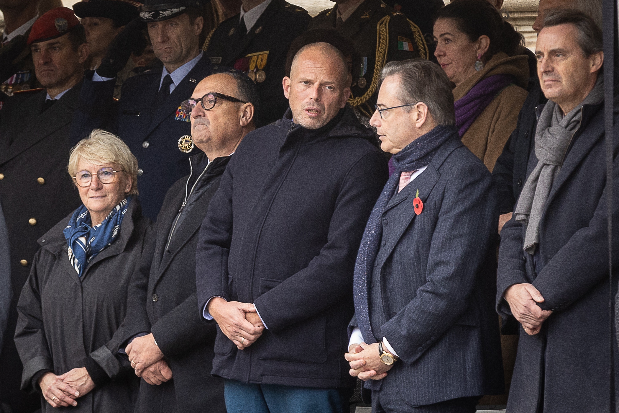 Minister of Defence Theo Francken and Prime Minister Bart De Wever pictured during a World War I commemoration at the 'Tomb of the Unknown Soldier' monument in Brussels, Tuesday 11 November 2025. Credit: Belga/James Arthur Gekiere
