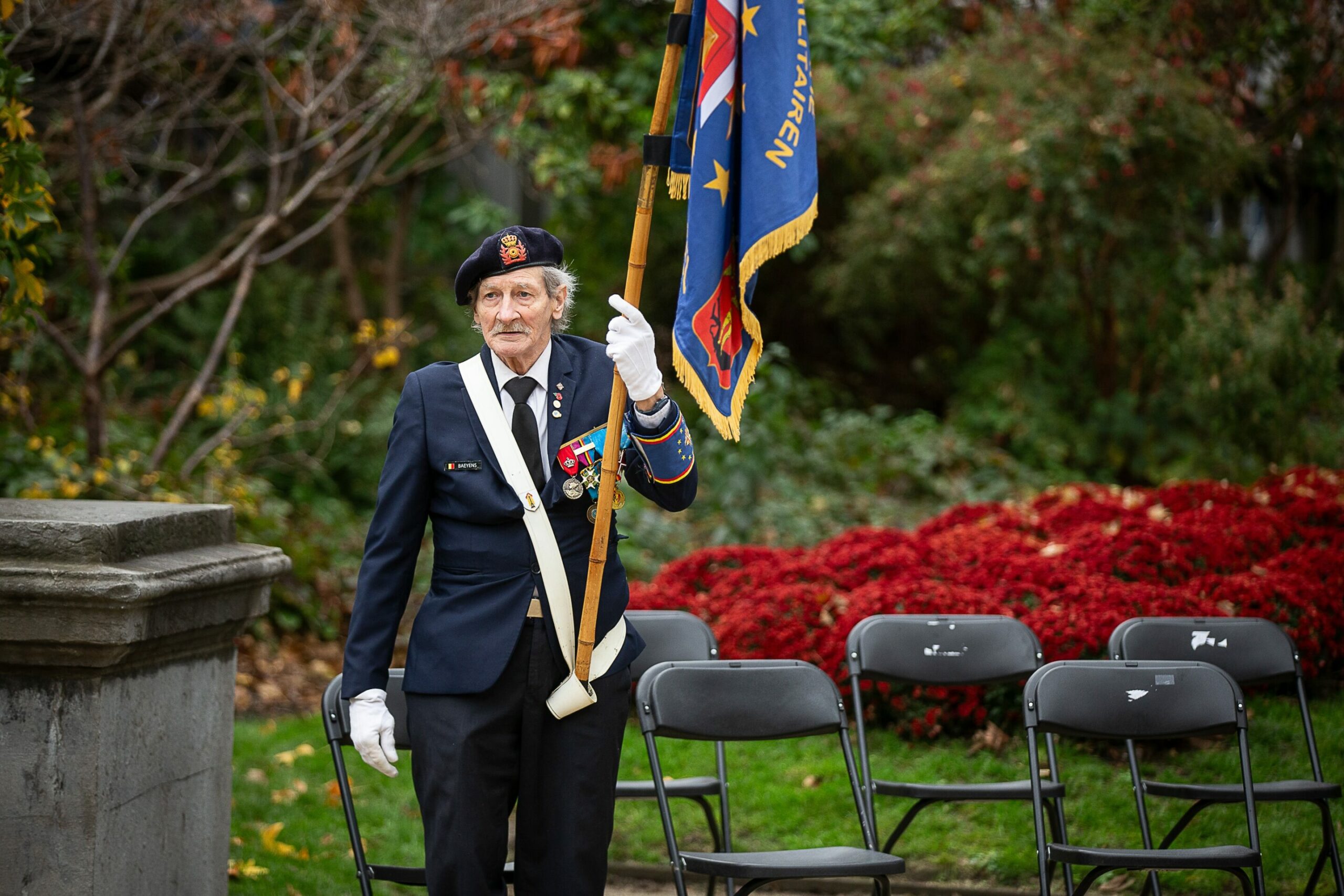 Illustration picture shows a veteran holding a flag during a World War I commemoration at the 'Tomb of the Unknown Soldier' monument in Brussels, Tuesday 11 November 2025.Credit: Belga/James Arthur Gekiere