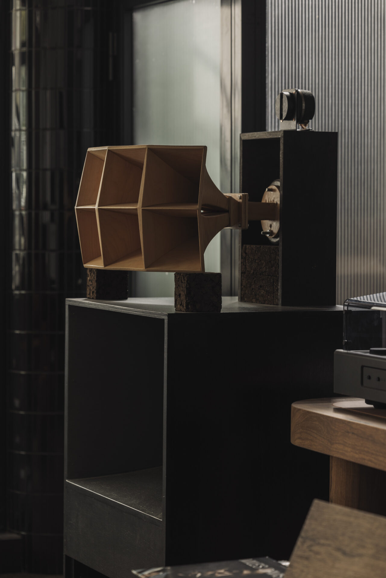 “It doesn’t really exist here,” Crabbé explains. “This is, I think, the first listening bar oriented toward the music system, almost like you are in a cinema. But instead of watching a movie, you’re listening to music.”