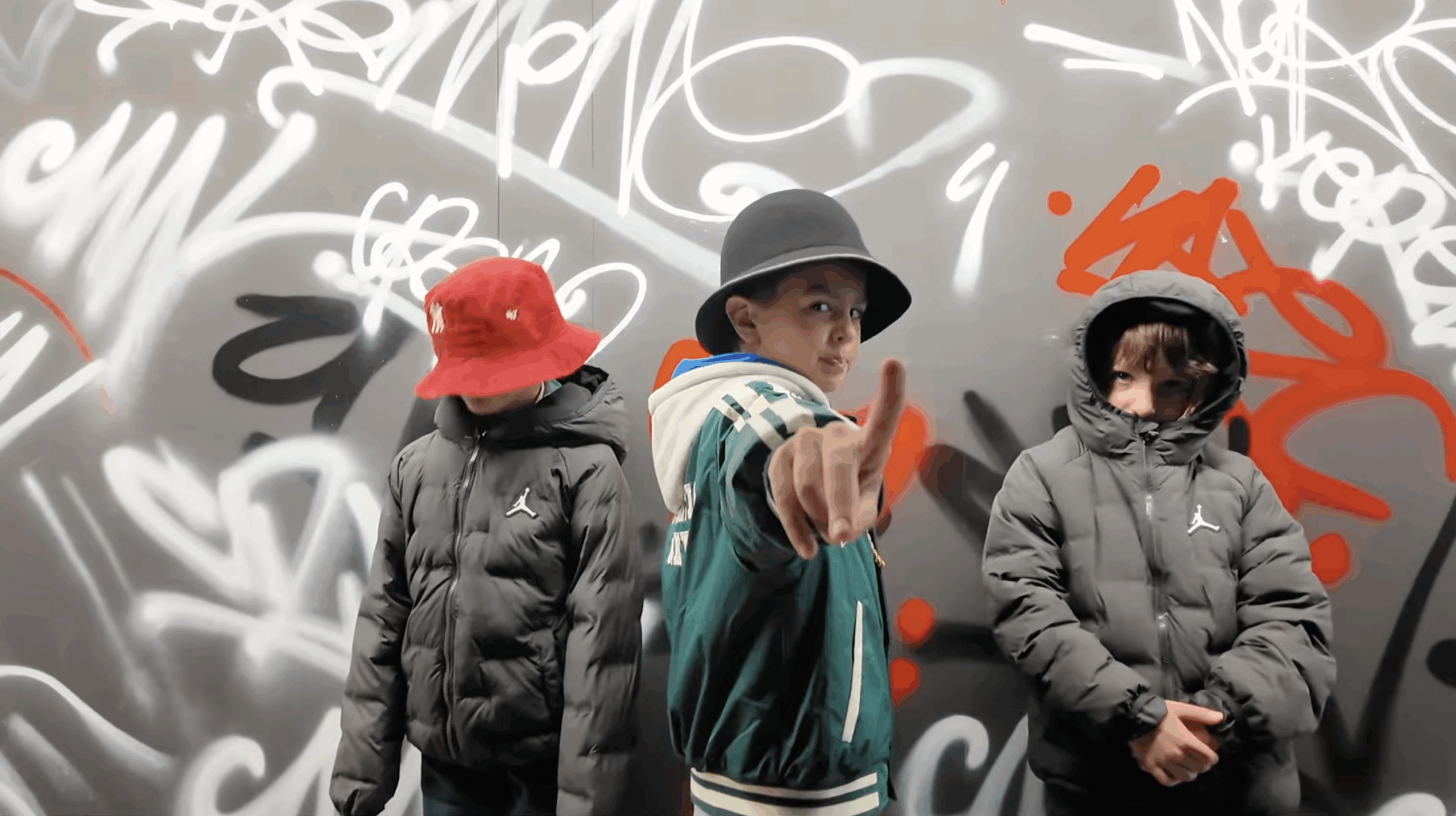 Dressed in a bucket hat, gold chain and hoodie, Young Yanis can be seen making signature rap gestures and symbols – mimicking his rapping heroes. In some shots, he is accompanied by his 'crew' of fellow 8-year-olds.