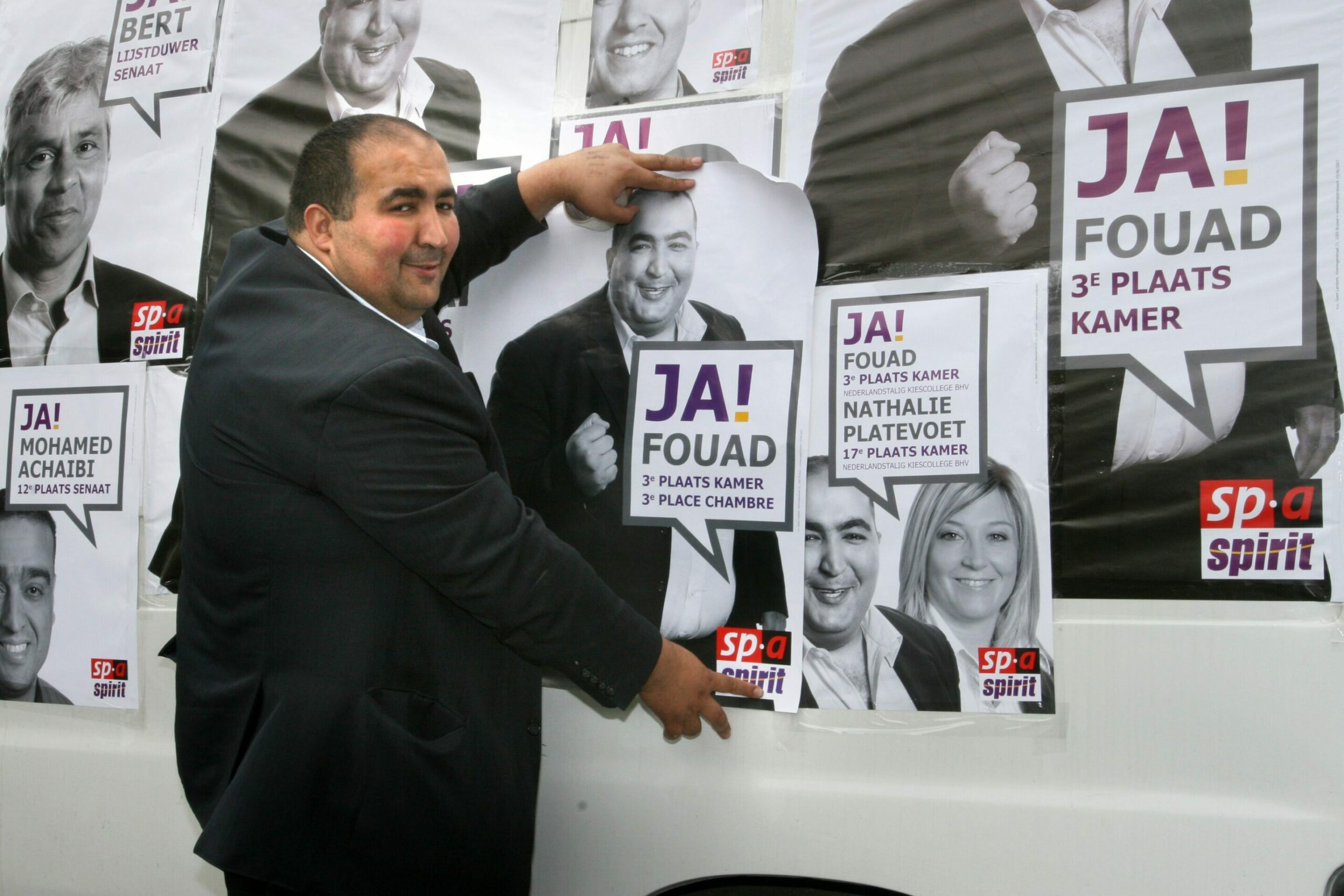 Fouad Ahidar pictured with his posters for the 2007 elections, when he was running with the Flemish socialists. Tuesday 5 June 2007 in Brussels. Credit: Belga