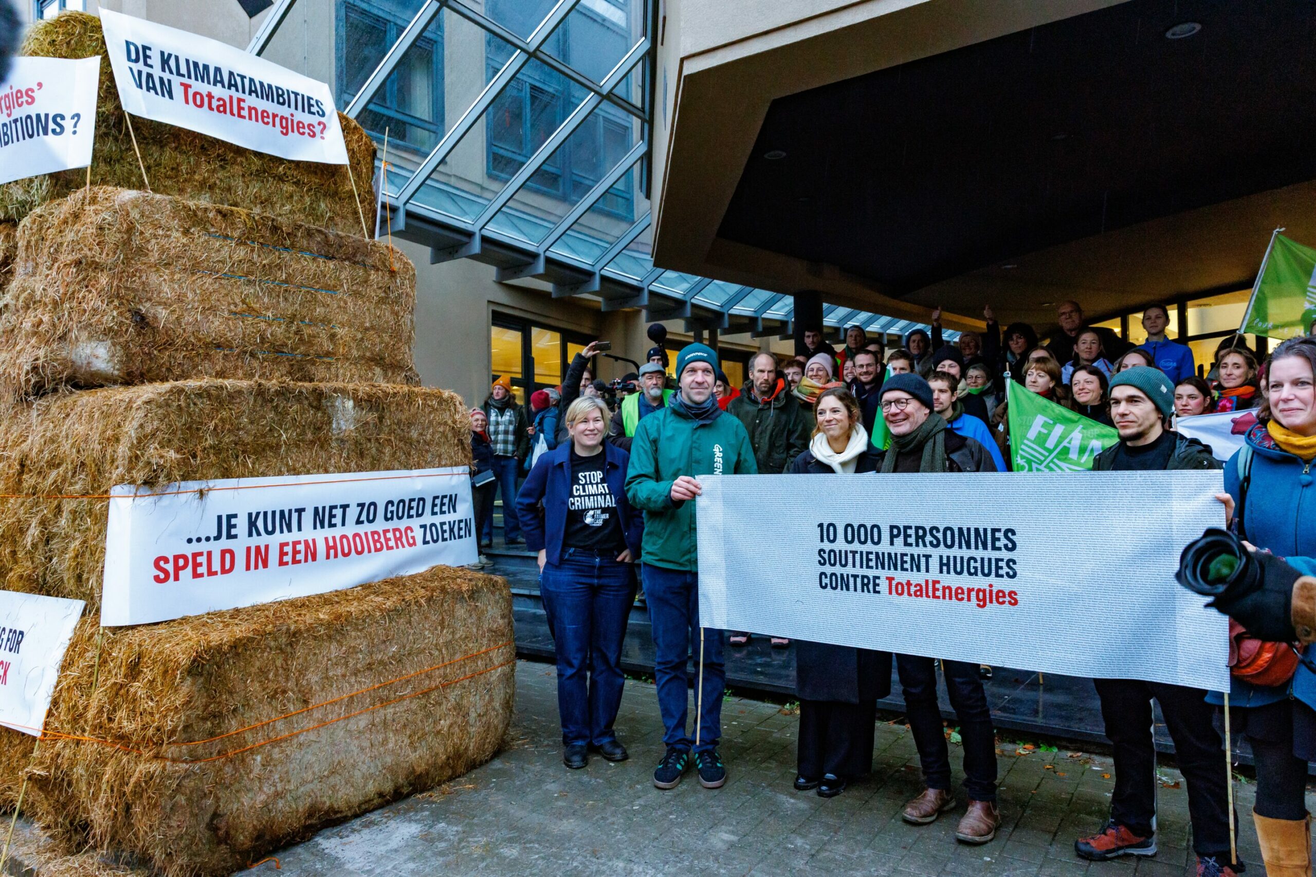 Farmer Hugues Falys pictured during a mobilisation in front of the court, as part of the lawsuit against TotalEnergies for its responsibility in climate change, in Tournai, 19 November 2025. Credit: Belga / Kurt Desplenter