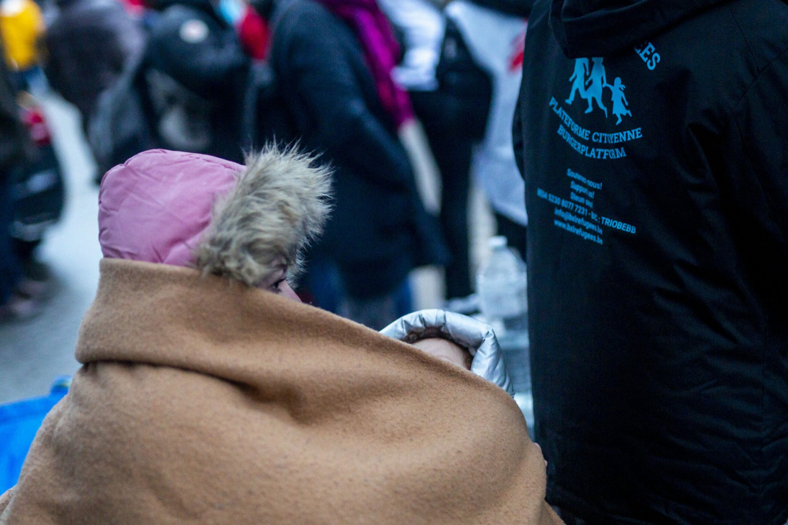 Illustration shows the conditions of waiting outside for asylum seekers in front of the 'Klein Kasteeltje - Petit Chateau' (Little Castle) Fedasil registration centre for asylum seekers in Brussels, Wednesday 01 December 2021. Credit: Belga
