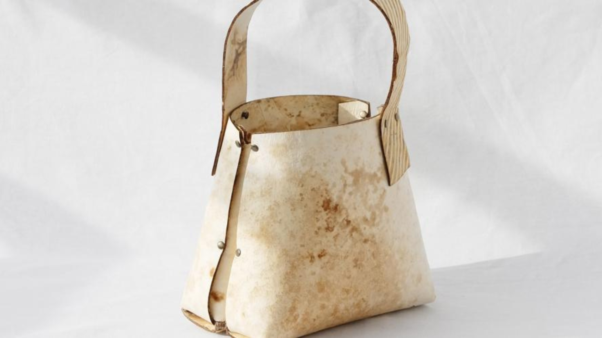 The first sustainable handbag from mycelium leather created by a team from the Brussels University VUB in 2023. Credit: VUB