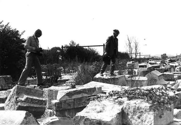 Jean Delhaye on the stones of the demolished Maison du Peuple