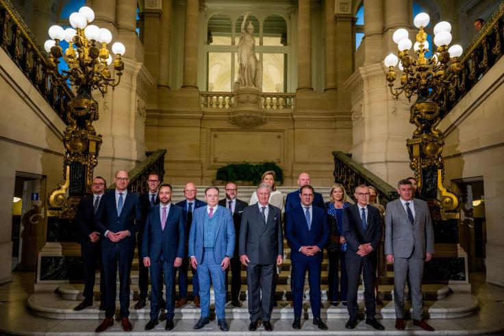 On 3 February, the new government was sworn in, led for the first time by a prime minister from N-VA. It was a historic moment, although it seemed like the official photograph was marred by poor lighting, in which the government's few female ministers were barely visible. Credit: Belga