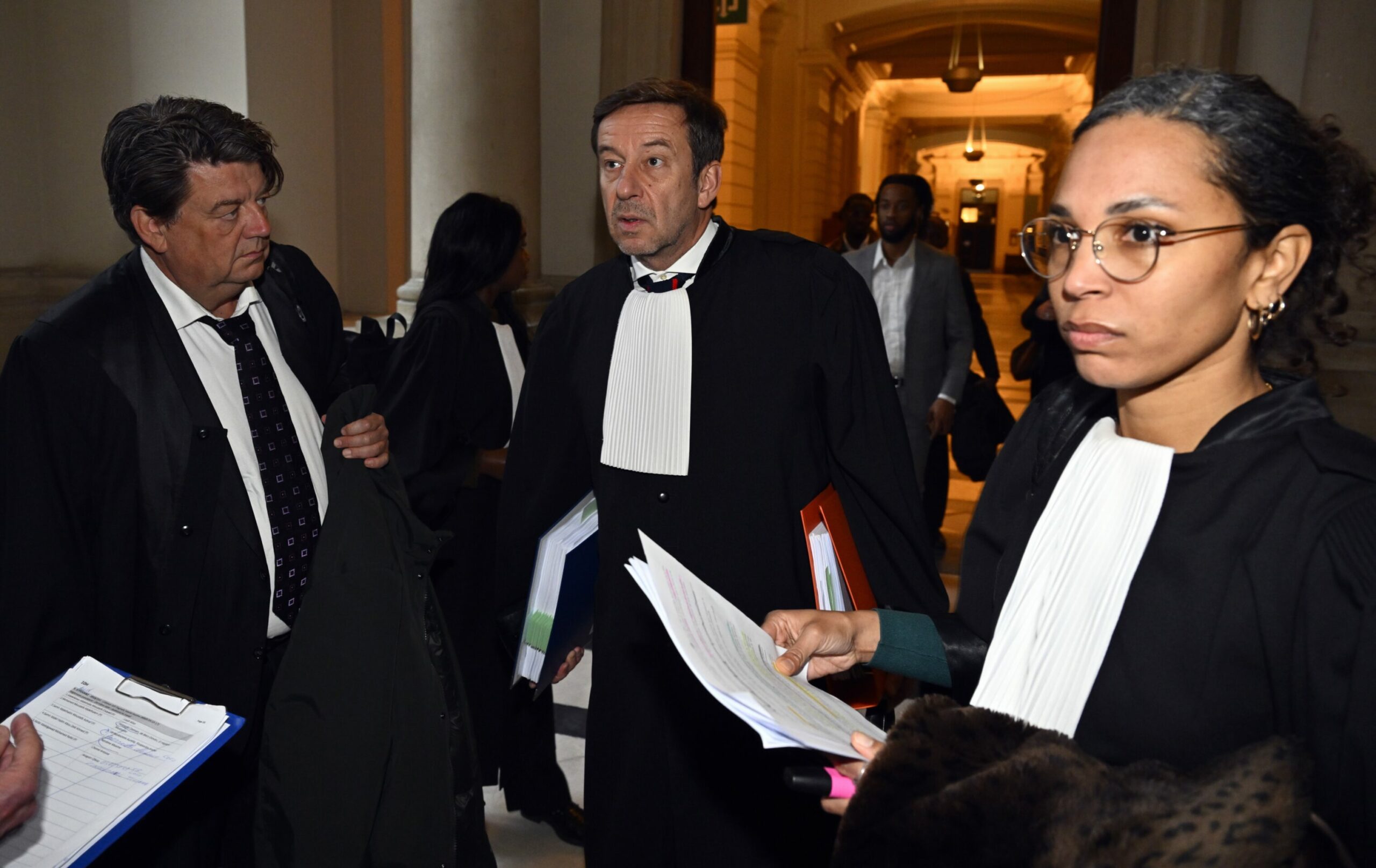 Lawyer Wolfgang Kaleck, Lawyer Christophe Marchand and Lawyer Jehosheba Bennett pictured during a session of the Brussels council chamber, in the case concerning the murder of Patrice Emery Lumumba, Tuesday 20 January 2026. Credit: Belga/Eric Lalmand