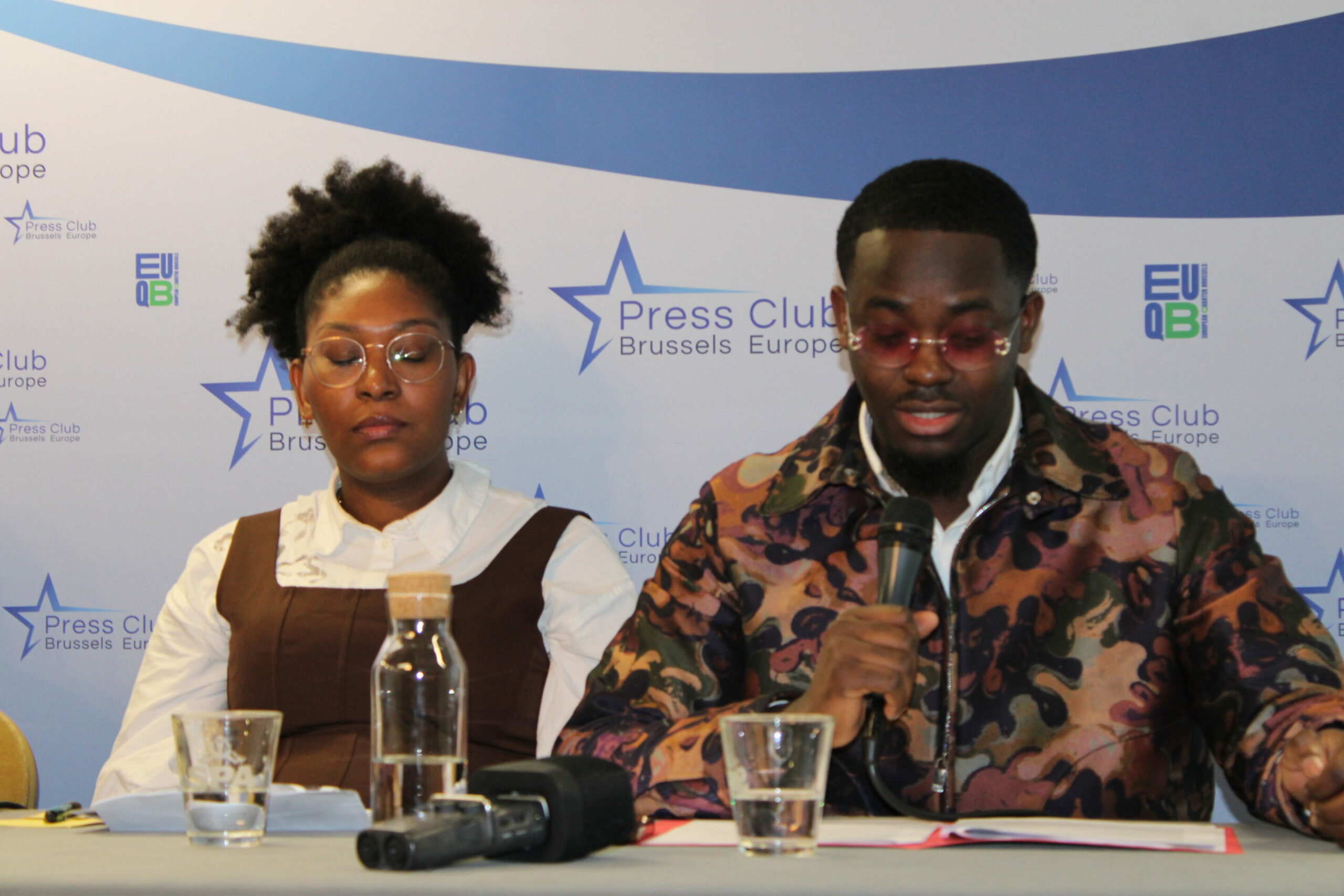 Yema and Mehdi Lumumba during the press conference. Credit: The Brussels Times/ Anas El Baye.