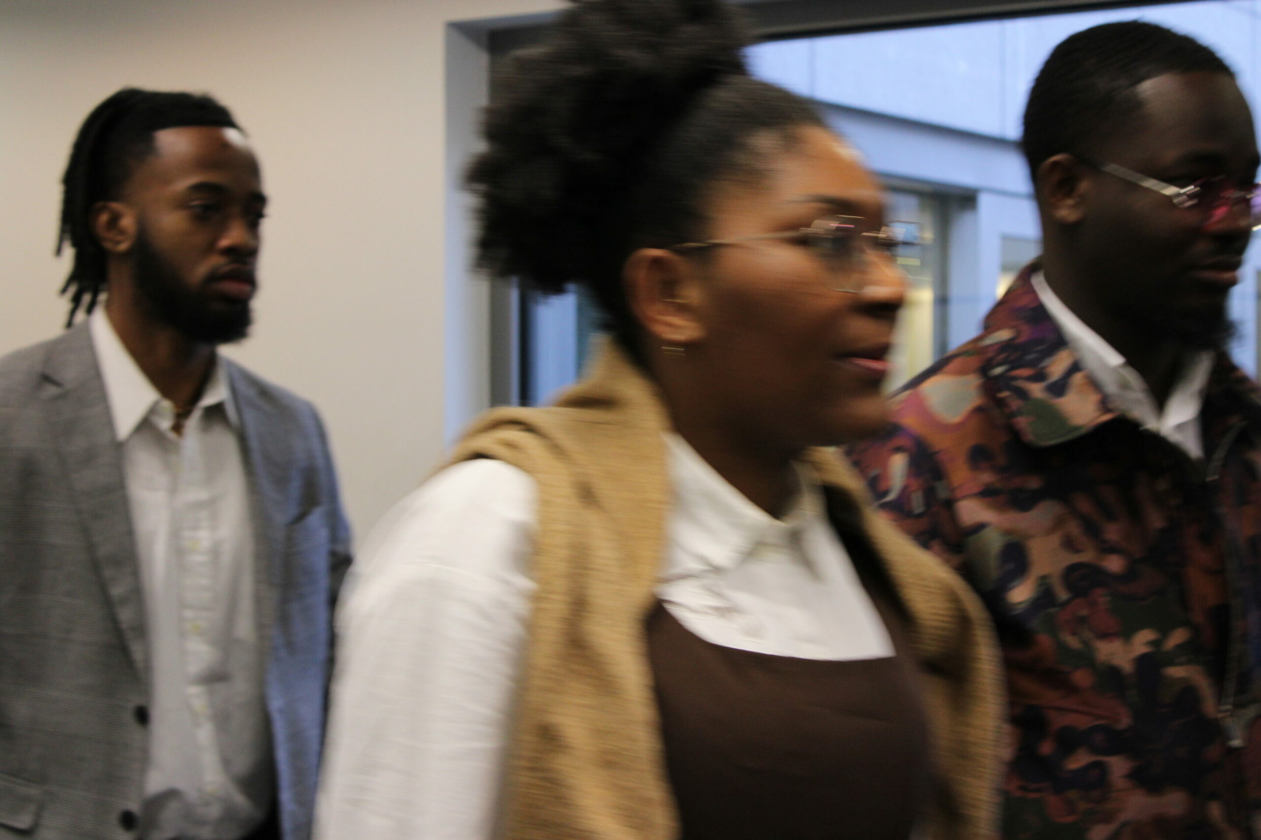 Richie, Yema and Mehdi Lumumba arriving to the press conference. Credit: The Brussels Times/ Anas El Baye.