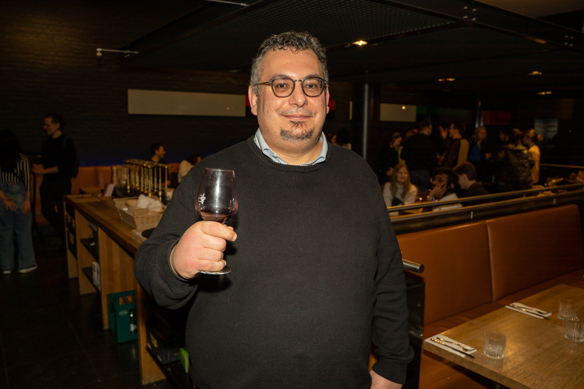 Gabriele Mogni photographed at his weekly meetup in between greeting guests. Credit: Vicente Torre Hovelson/ The Brussels Times.