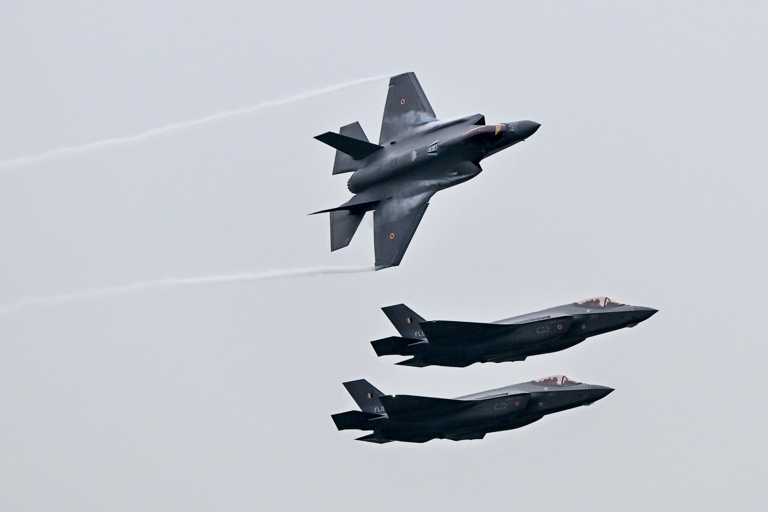 Lockheed Martin F-35 Lightning II fighter jets at the Florennes military airbase in Belgium, on Monday, 13 October 2025. Credit: Dirk Waem/Belga