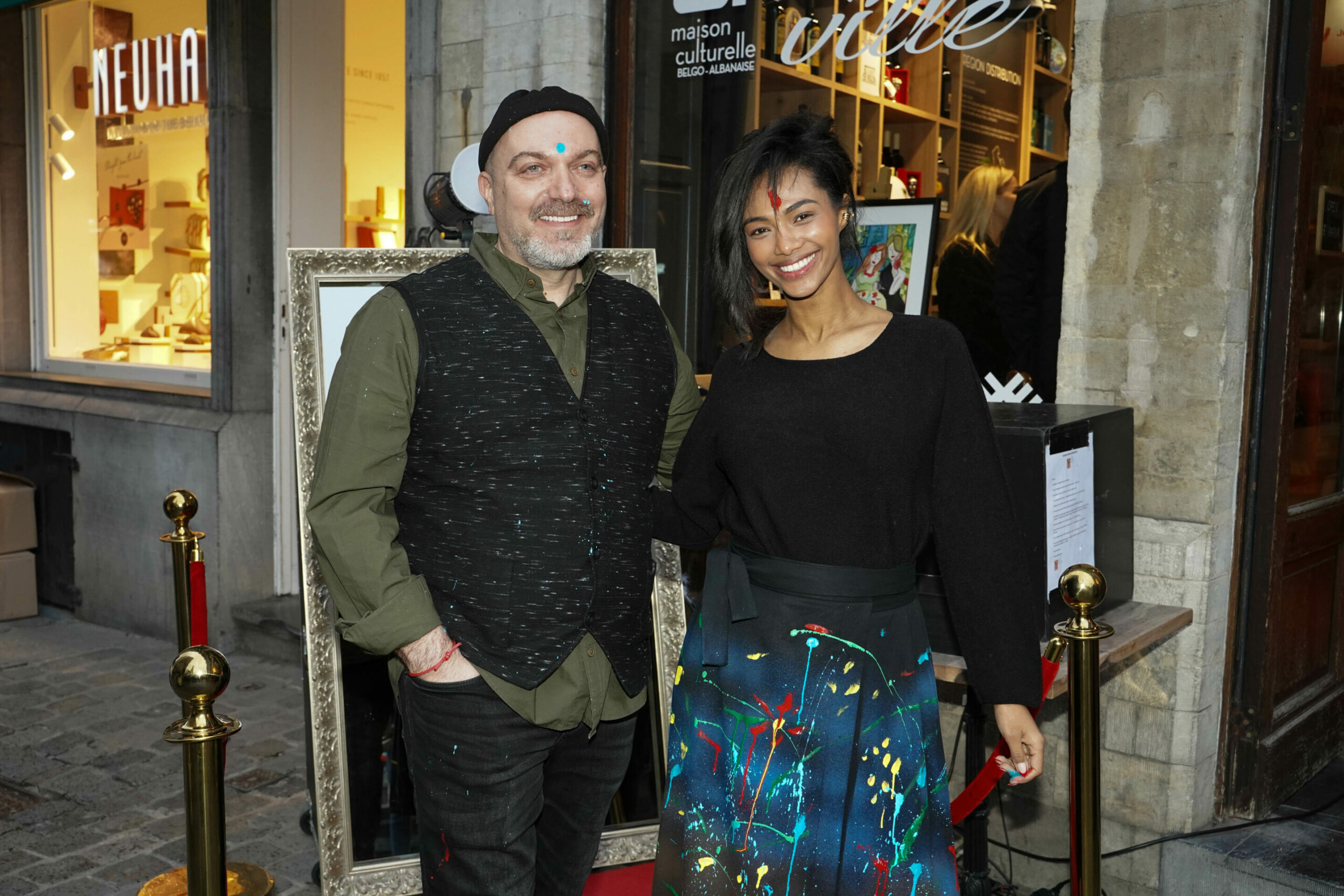 Dastid Miluka pictured with Kedist Deltour (Miss Belgium 2021) at Balkan Sustainable Fashion Night. Credit: Vicente Torre Hovelson.
