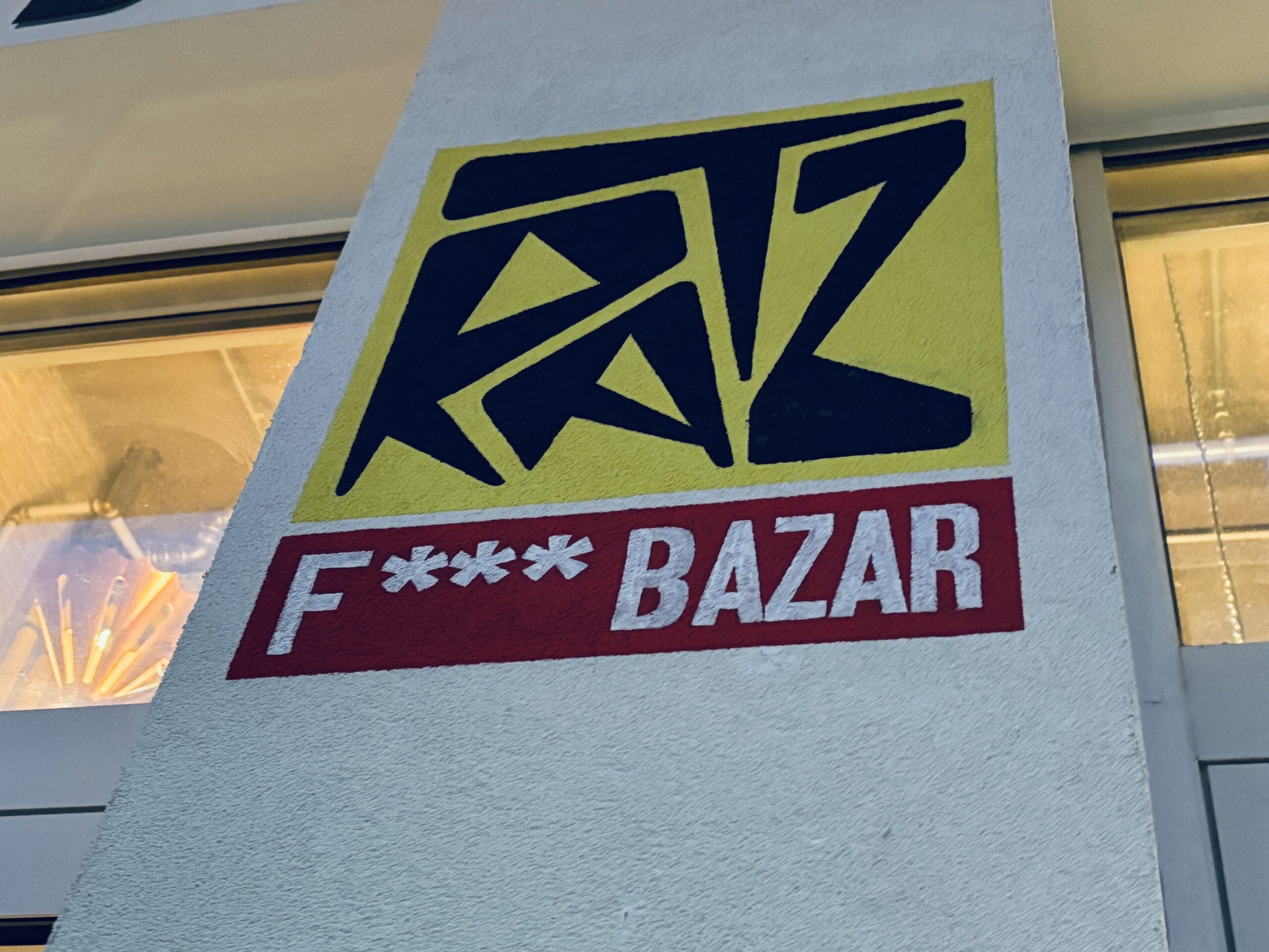 Upon arriving, we are greeted by a large RATZ F*** BAZAR spray-painted on the external wall. The tone is already set. Inside, the 3,000 m² former parking garage feels unfinished, but deliberately so.