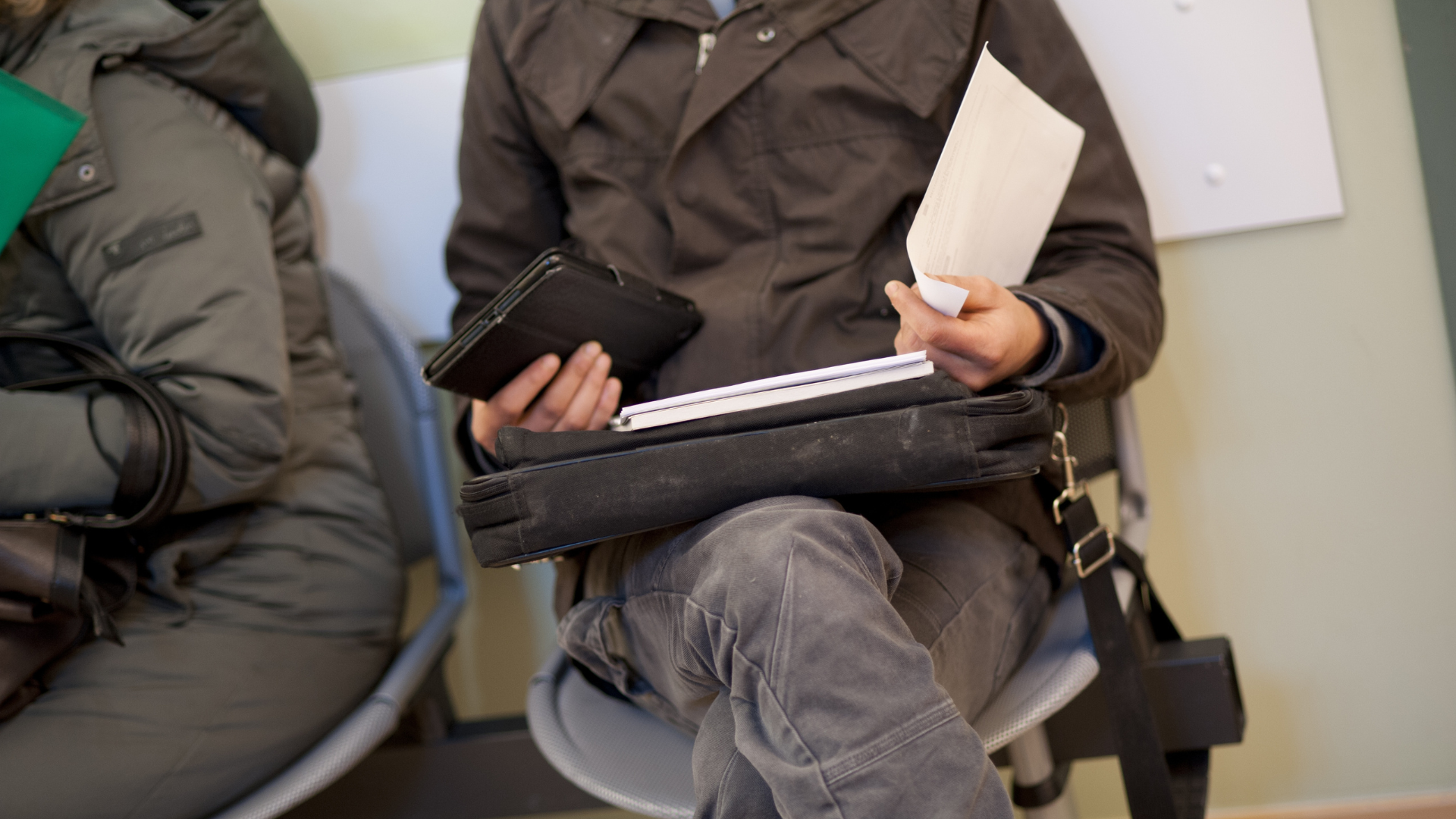Image of a person waiting at a public welfare centre in Brussels. Credit: Belga