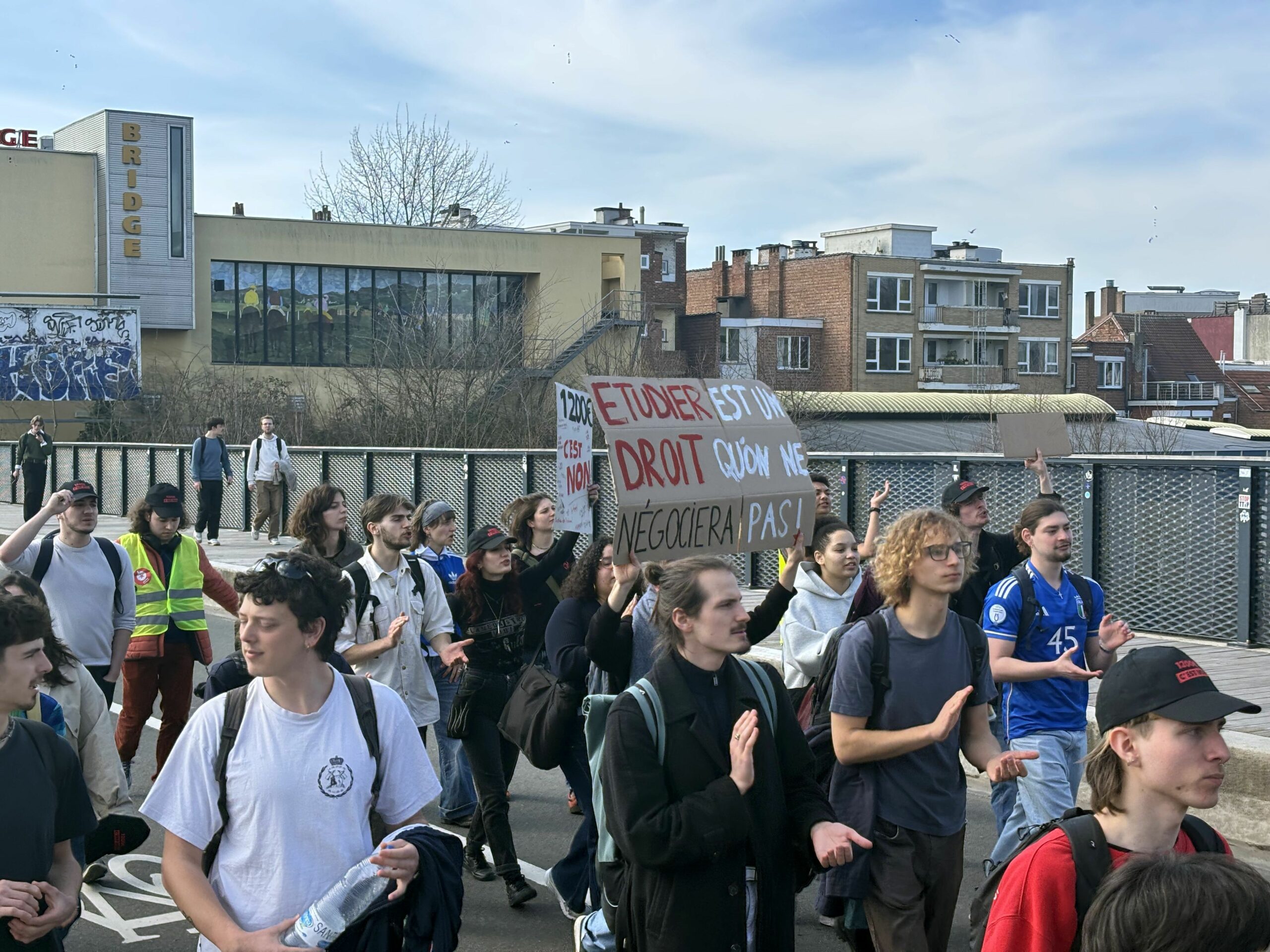 Around midday, approximately 350 students gathered to march along Avenue Paul Héger. Chanting slogans such as "€1,200 is a no!" and "Studying is a right we won’t negotiate," the participants voiced their opposition to the plan.