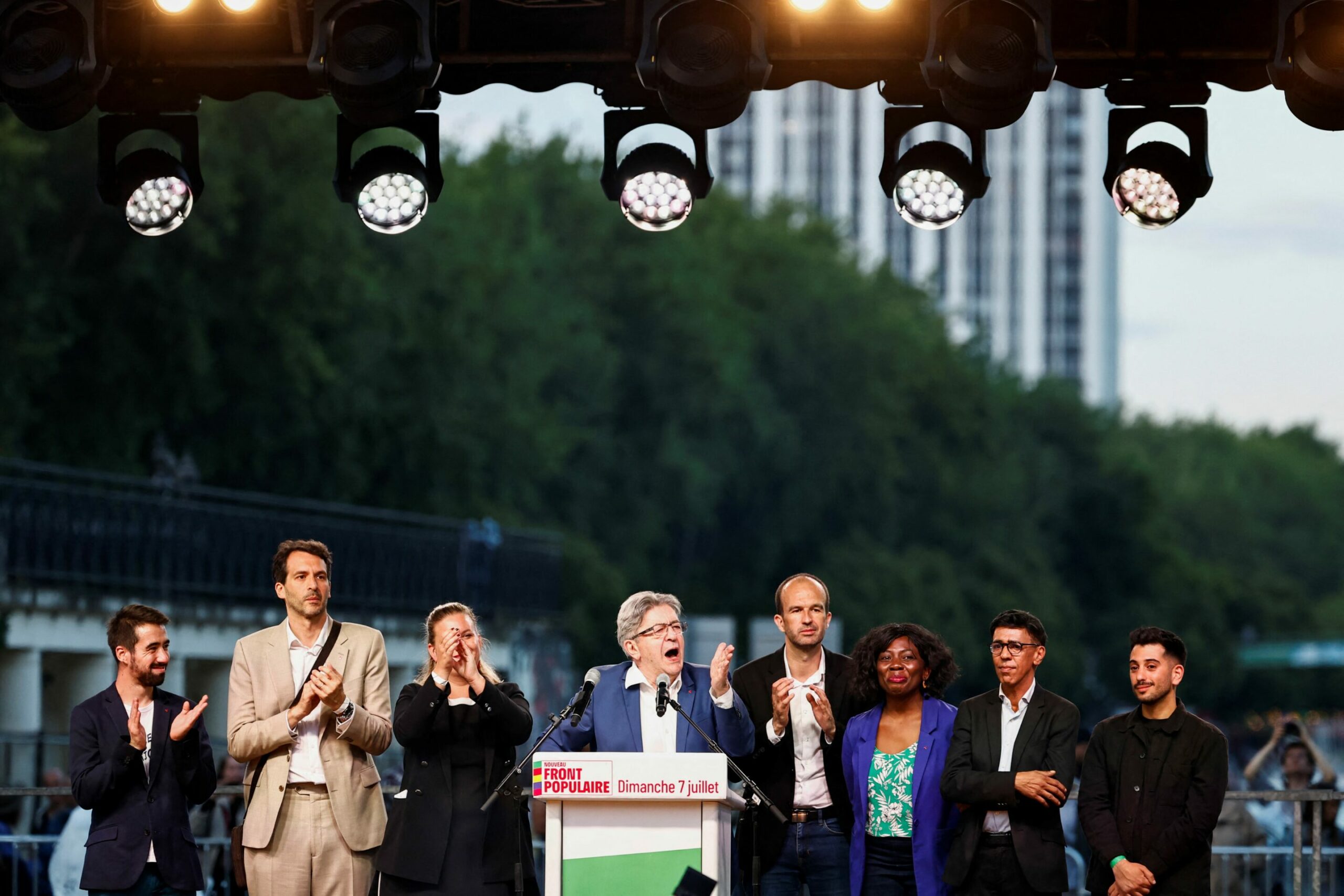 LFI's Jean-Luc Mélenchon addresses a rally after the 2024 elections. Credit: Belga / AFP
