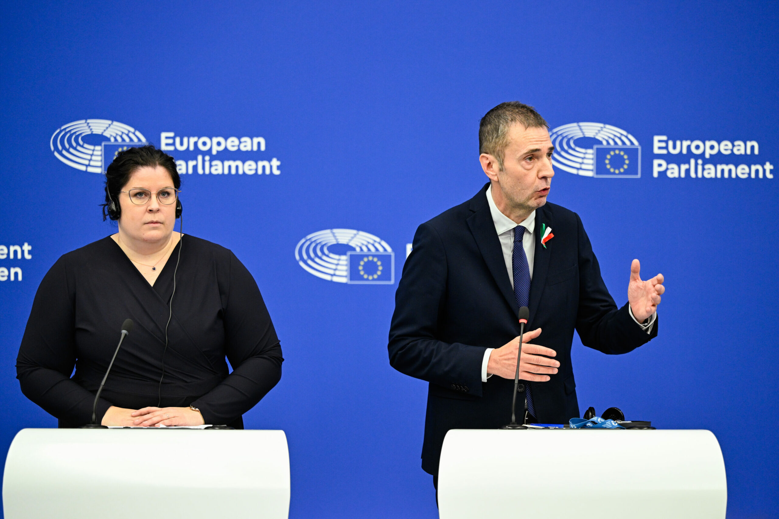 Press conference on "Safe countries of origin and safe third country concept", with Germany's Lena Dupont (EPP), with far-right Italian MEP Alessandro Ciriani (ECR).