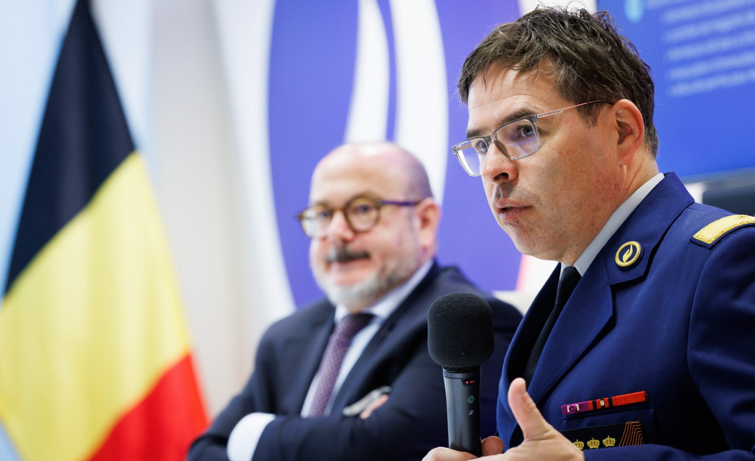 Minister of Interior Bernard Quintin and Federal police General Commissioner Eric Snoeck. Credit: Belga/Benoit Doppagne