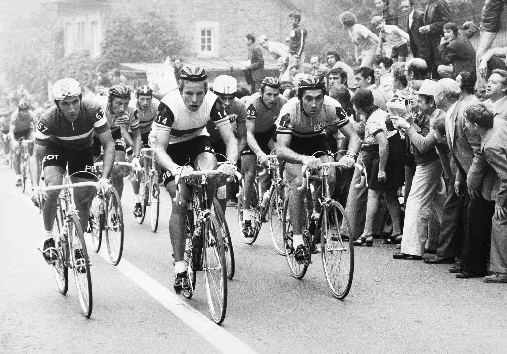 Eddy Merckx (R) in action during a race in 1973. Credit: Belga Archives