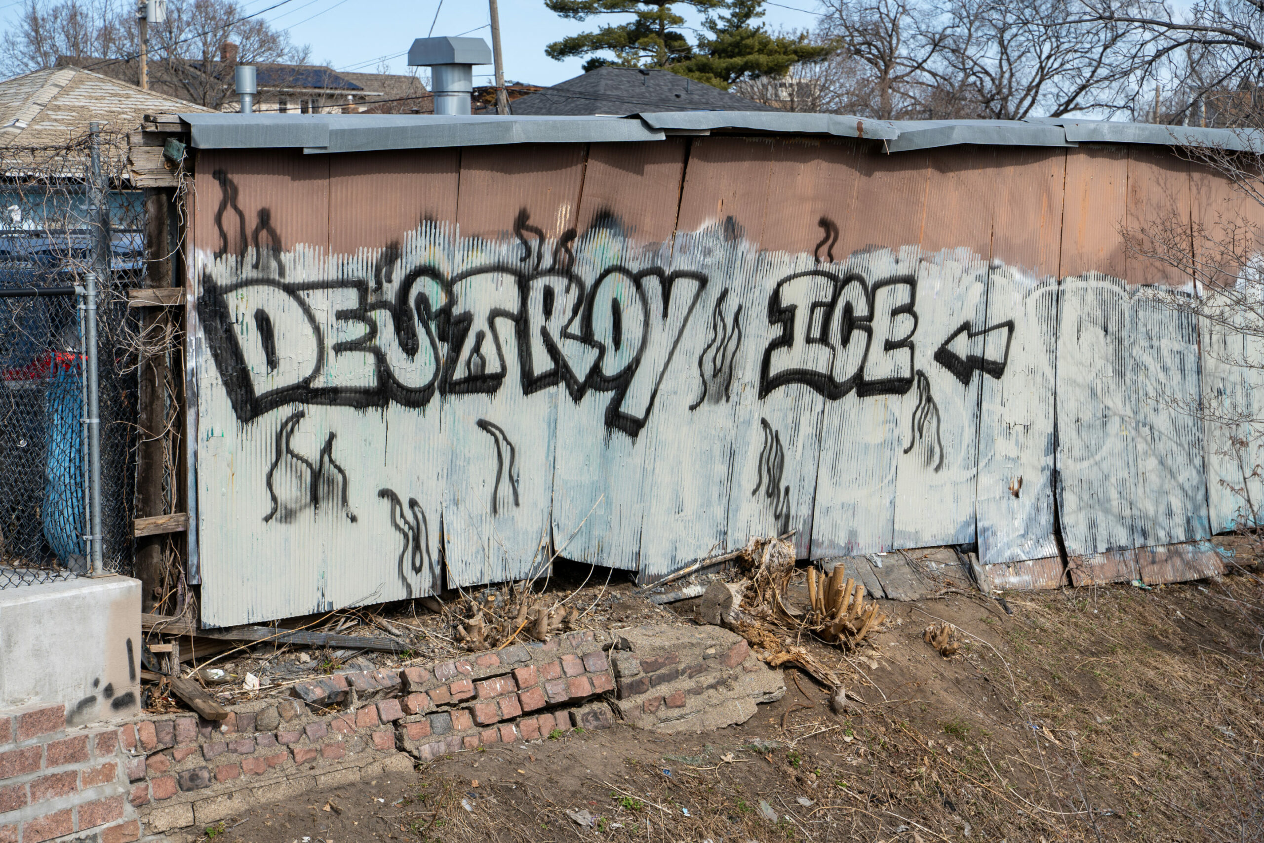 Anti-Ice graffiti a few kilometres away from Kim’s garage. Credit: Vicente Torre Hovelson/ The Brussels Times.