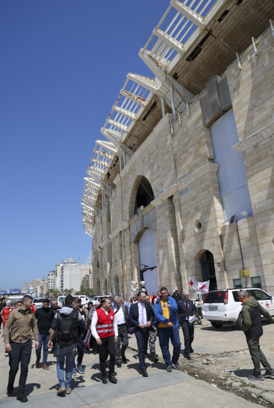 The minister began his itinerary with a visit to Camille Chamoun Stadium, which the Red Cross has converted into a shelter for more than 1,100 displaced people, mainly from the south.