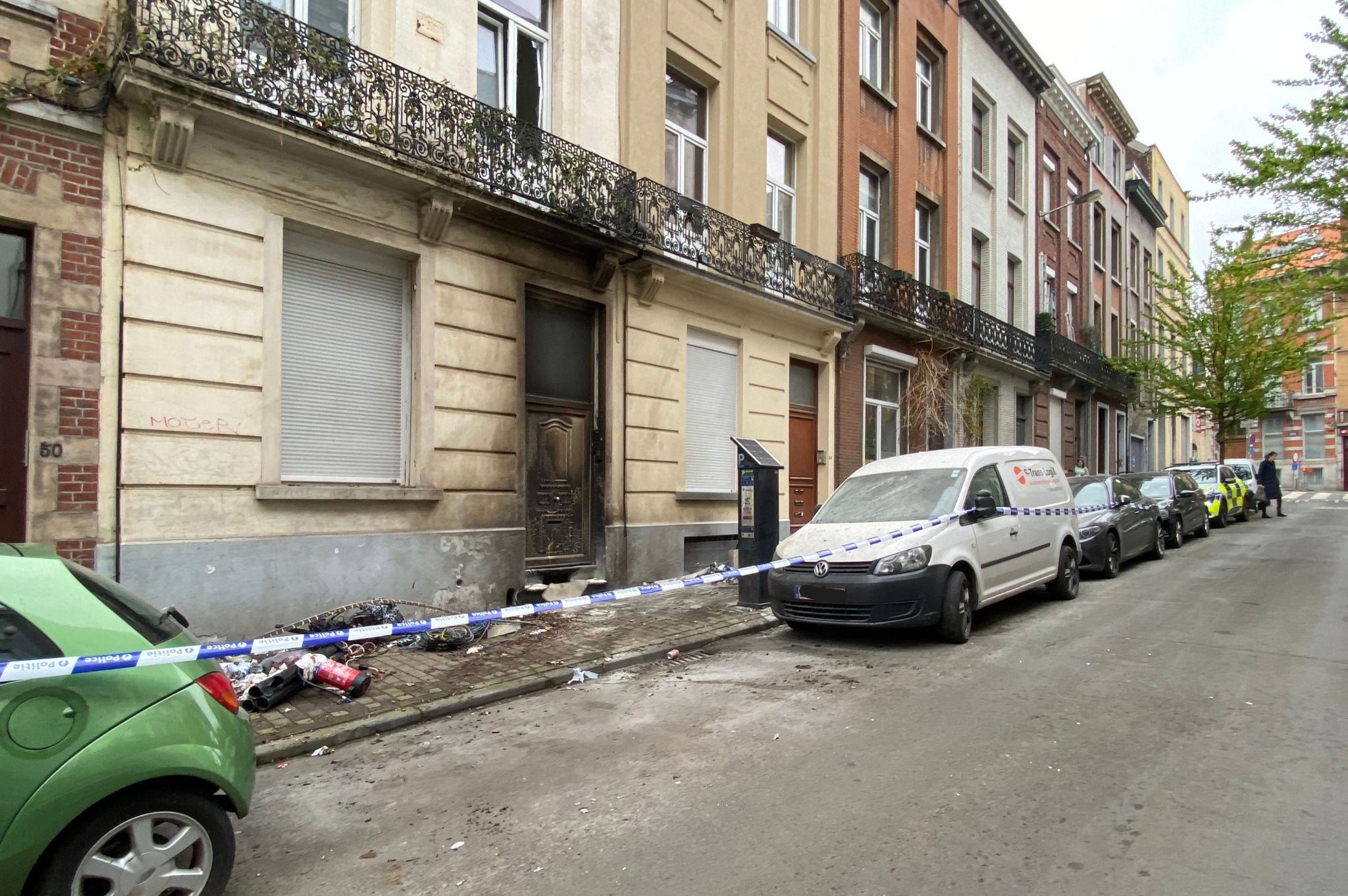 Damage outside the house in Rue de Prague, Saint-Gilles. Credit: The Brussels Times