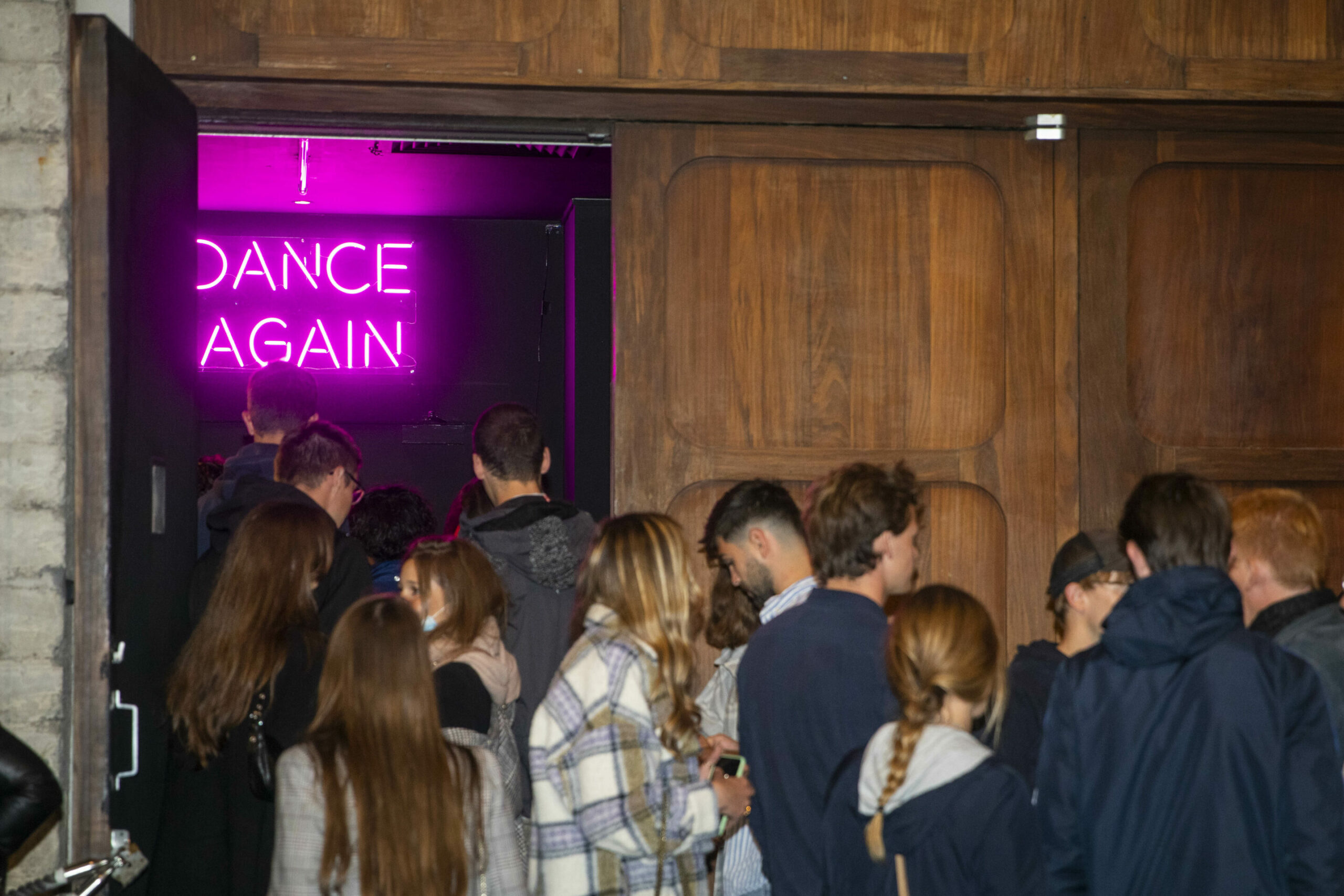 Illustration shows people queuing outside a nightclub in Brussels, Friday 01 October 2021. Credit: Belga