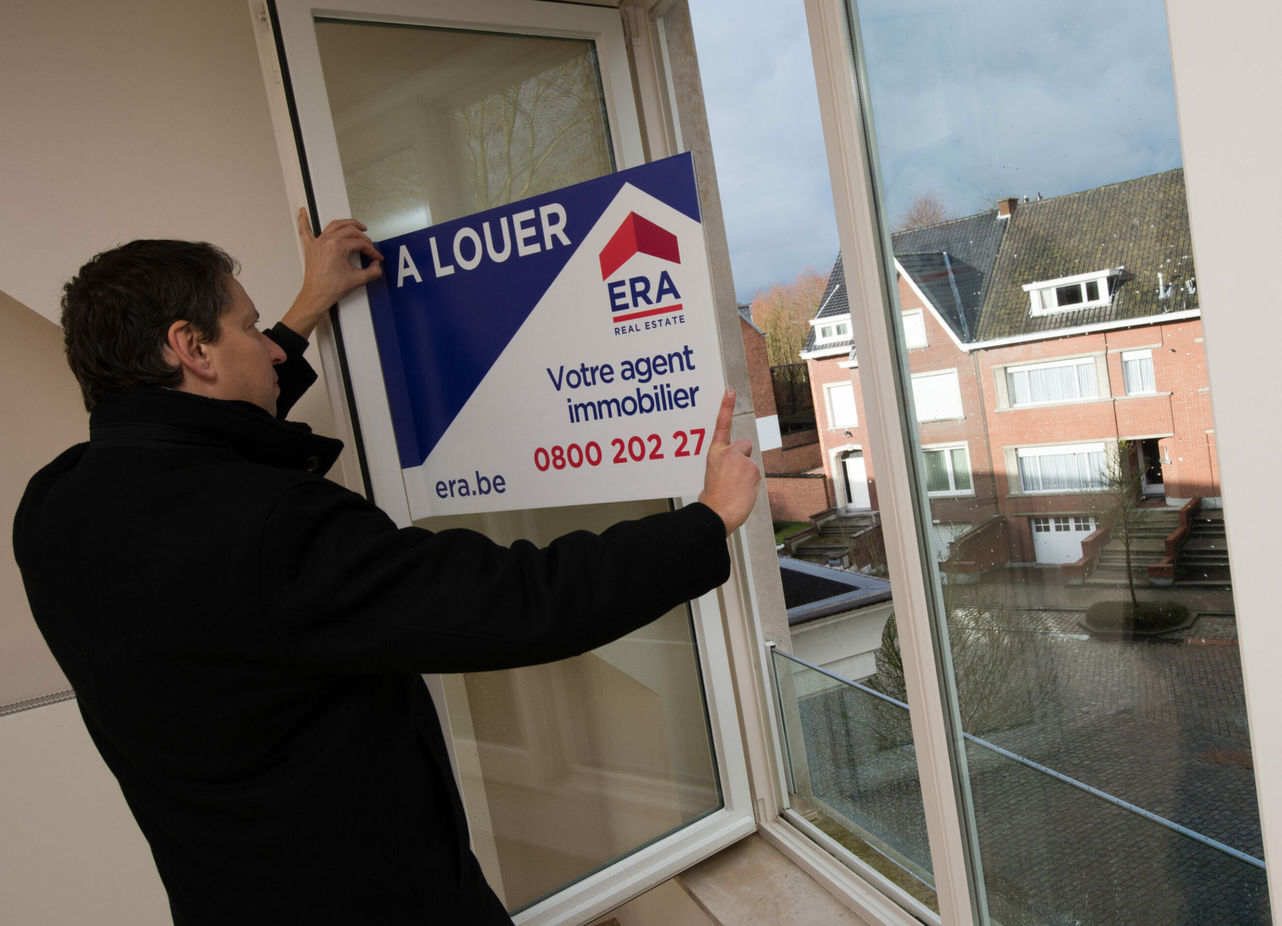 Picture shows a 'A Louer' sign of Era real estate company on a house. Credit Belga/ Benoit Doppagne