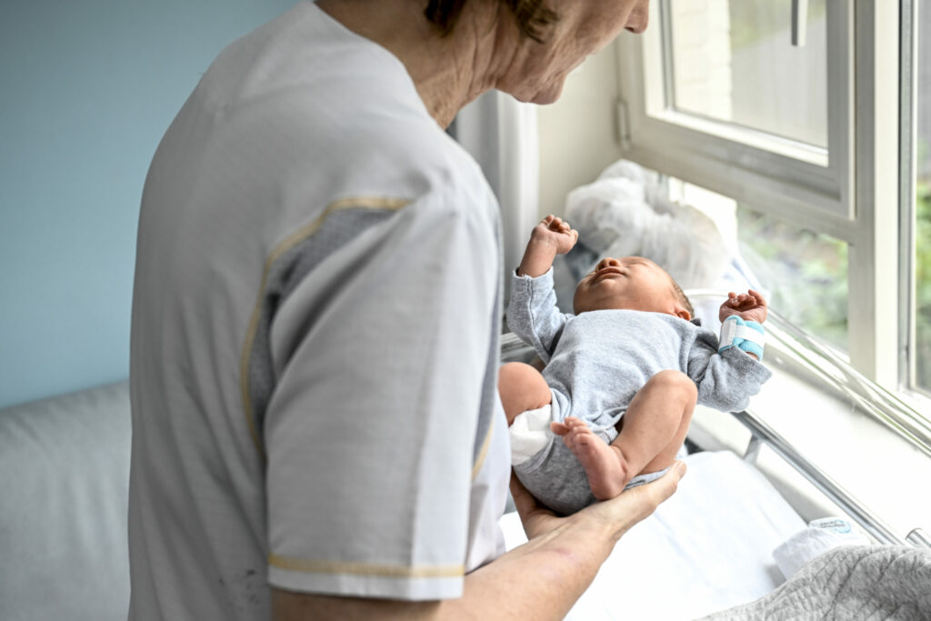 A nurse holds a baby in the maternity department in the Imelda hospital in Bonheiden on, Thursday 17 August 2023. Credit: Belga/Dirk Waem
