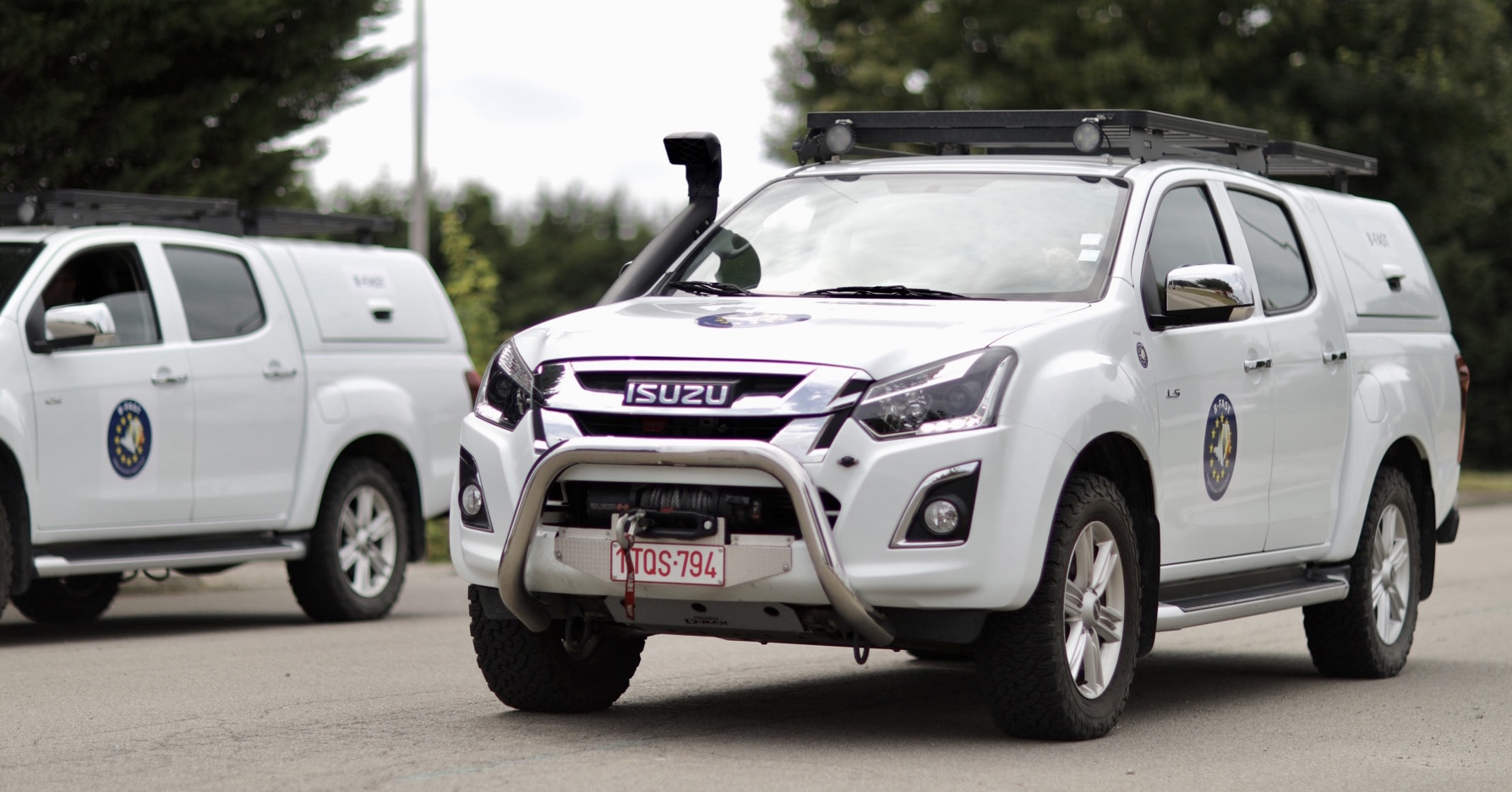 The vehicles used by Red Cross, a humanitarian organisation that provides emergency and disaster related services and relief during crisis situations, working alongside the Federal Police.