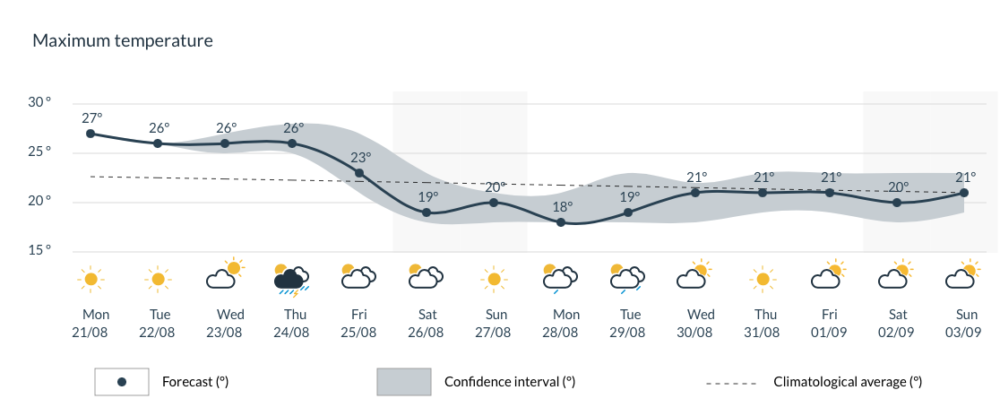 The weekend will be changeable with clear spells interspersed with a few showers. The short period of warm weather will end as temperatures drop to 21°C in Brussels on Saturday and Sunday.