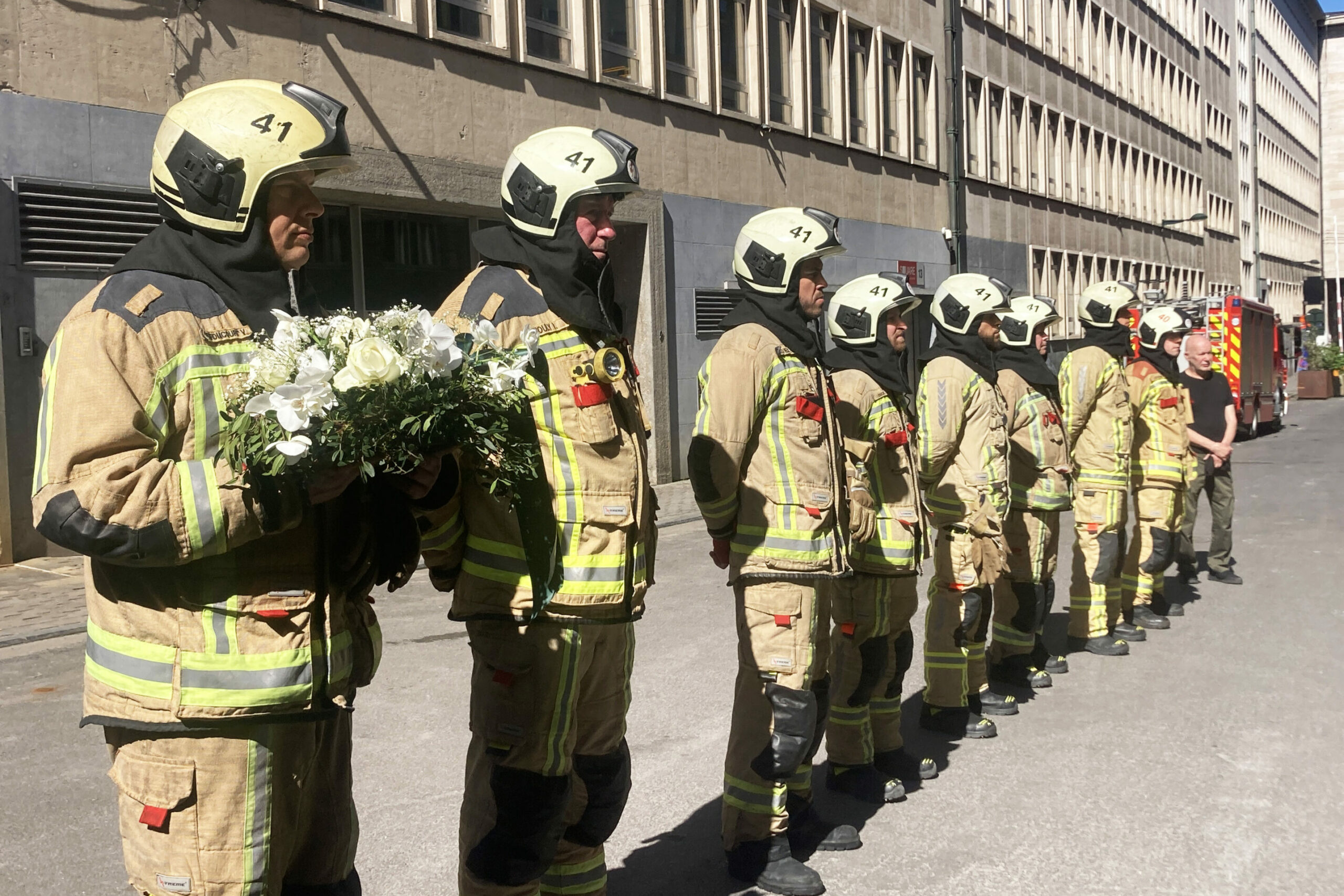In addition to the Brussels Fire Brigade, the Director General of the FEB Pieter Timmermans, City of Brussels Mayor Philippe Close (PS), and a representative of the Minister of the Interior, Bernard Quintin (MR), attended the tribute.