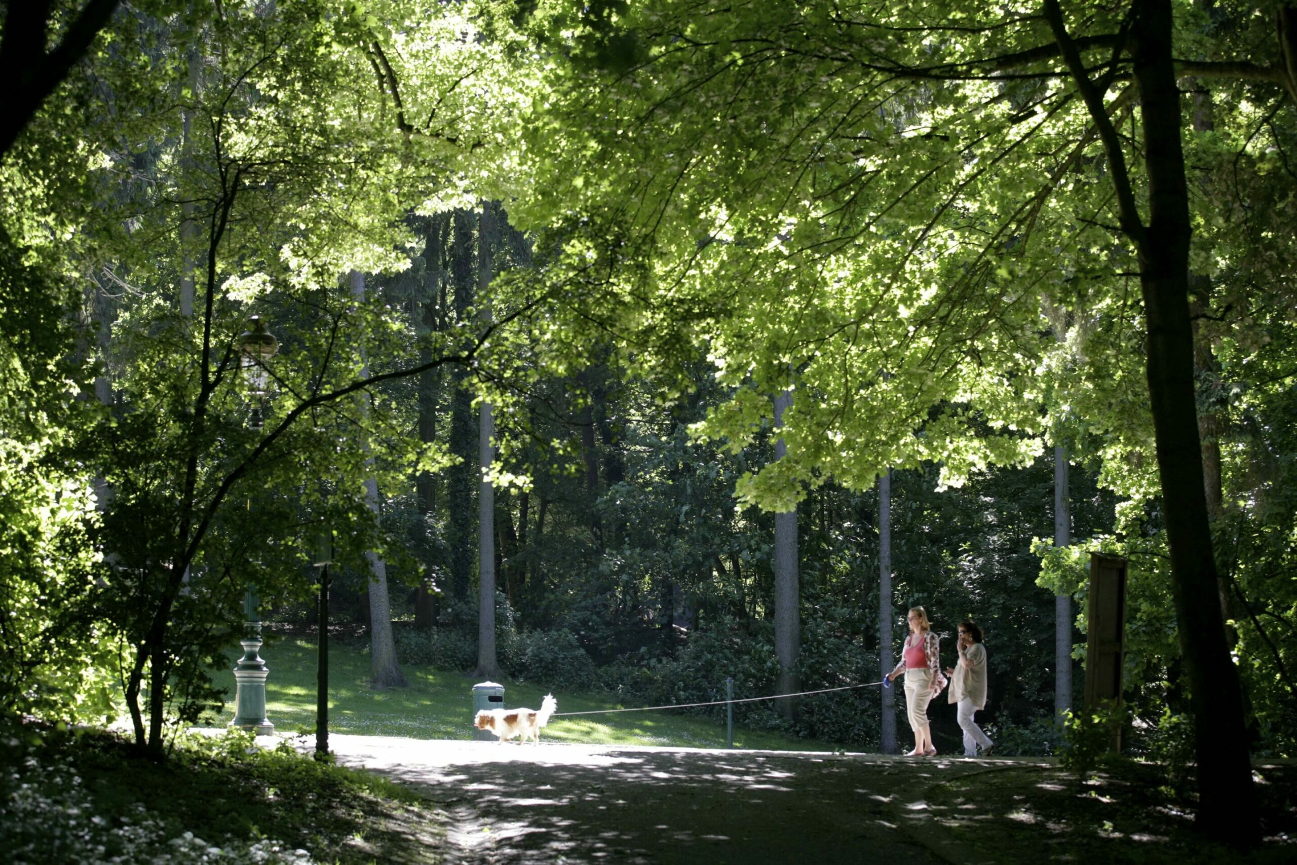 People walking their dog as the temperatures reach 24°C in Brussels, Friday 25 May 2012. Credit: Belga / Nicolas Maeterlinck